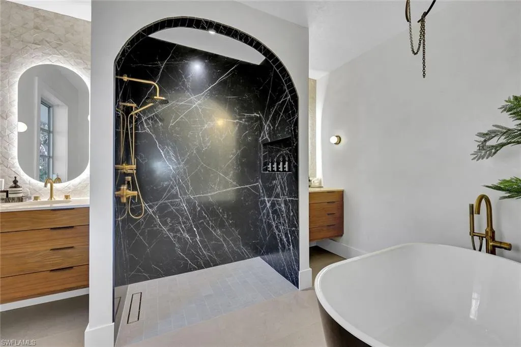 Retreat to your spacious primary bedroom, featuring his and her closets and a lavish ensuite bath. Indulge in the on-trend soaking tub, glamorous stone shower, and split vanities that elevate your daily routine to a spa-like experience.