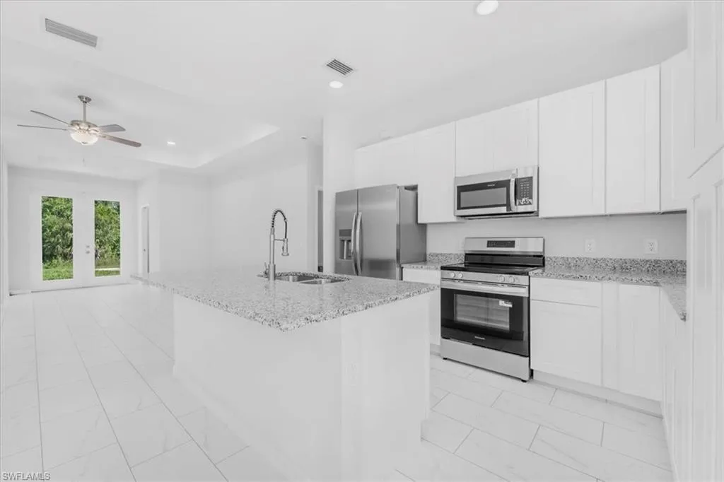 The kitchen features granite countertops, a large island with bar seating, and stainless steel appliances ideal for both everyday living and entertaining. The luxurious primary suite boasts dual walk-in closets and a spa-like bathroom with a large walk-in shower, free-standing soaking tub, and dual vanities. Lehigh Acres is one of Southwest Florida’s fastest-growing communities, offering affordable living with convenient access to the Gulf’s beautiful beaches, boating, fishing, golf courses, and nature preserves. Sports enthusiasts will love being just a short drive from JetBlue Park and Hammond Stadium. The area is also close to Florida Gulf Coast University, Florida SouthWestern State College, shopping, dining, and Southwest Florida International Airport.