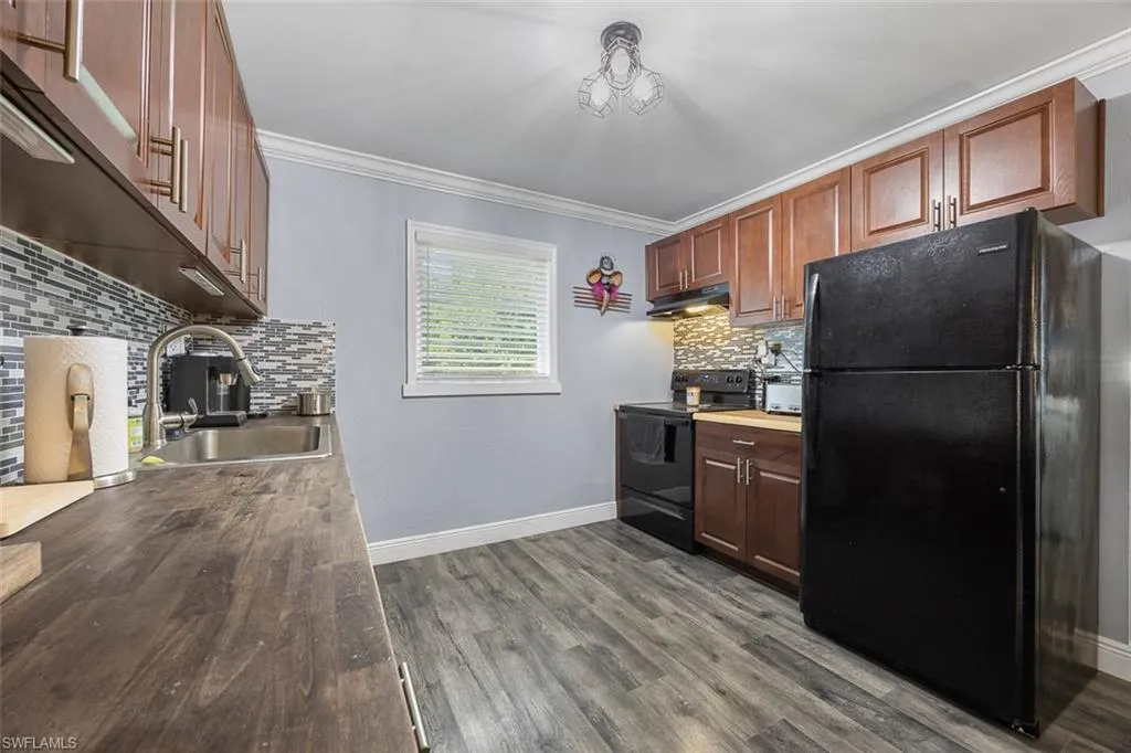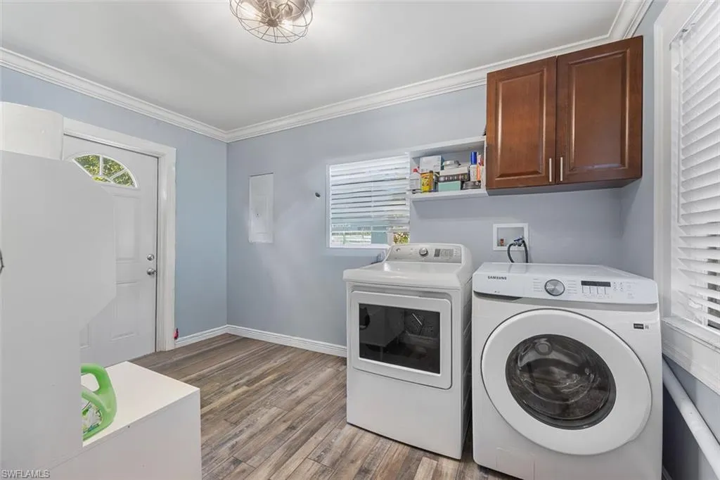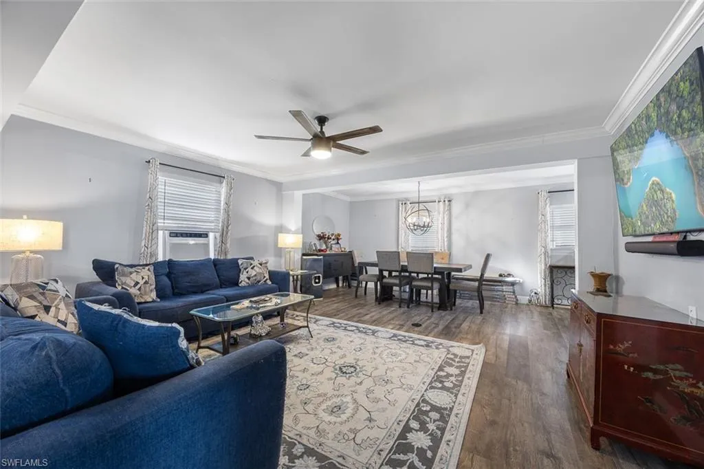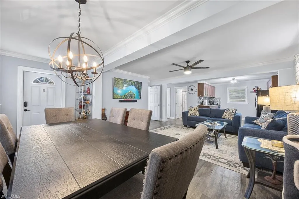 Welcome to 3916 Woodside Ave in Fort Myers. This beautifully updated 2-bedroom, 1-bath home offers 1,096 sq ft of living space and has been thoughtfully renovated with modern touches throughout. The home features updated flooring (2020), a remodeled kitchen (2020) with stylish finishes, and a fully remodeled bathroom. Important system updates include a new roof (2020), new sewer line (2020), new water heater (2024), and a brand-new washer. The home is cooled with a new wall-unit AC, and crown molding throughout adds an elegant finishing touch.