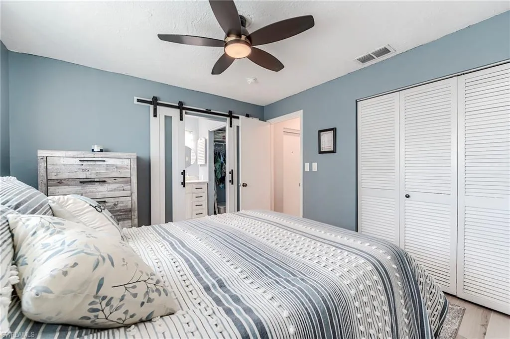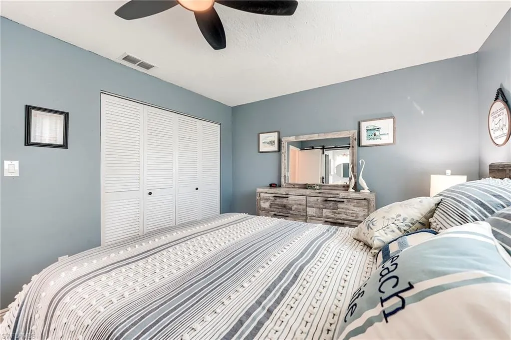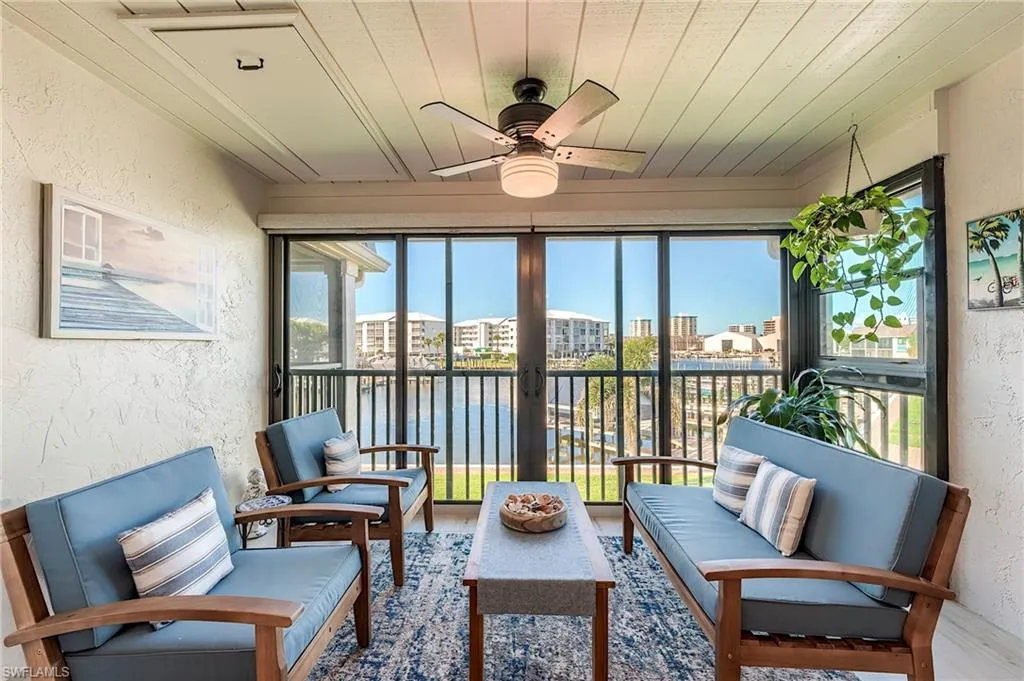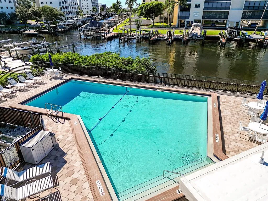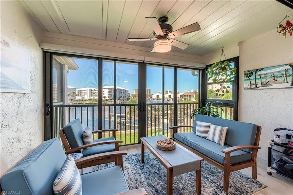 This 1-bedroom, 2-bath coastal style condo at Estero Island Yacht & Racquet Club offers a highly desirable weekly rental policy and a prime location just one block from the Gulf beaches. The sought after second-floor residence provides direct views of the canal and green space, where you can watch passing boats and enjoy the coastal lifestyle. Recent upgrades include new porcelain tile flooring throughout, hurricane-impact doors and windows, three ceiling fans, raised ceilings in both bathrooms, new barn doors to the primary bath, updated vanities and toilets, new kitchen faucet, plus a new hot water heater and air conditioner. The lanai features a new sun shade along with built-in stairs and storage access. The floor plan offers a remodeled kitchen with modern appliances and the convenience of a second full bath for guests. Estero Island Yacht & Racquet Club is a pet-friendly community with lower fees, lush landscaping, and potential dock purchase opportunities. Close to shopping, dining, and island amenities, this property is ideal as a vacation home or investment with year-round rental demand. Your coastal retreat awaits!!!