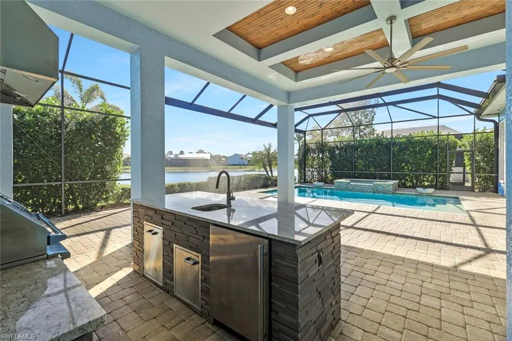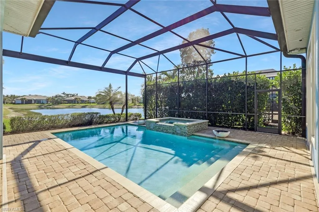 Experience the ultimate Florida lifestyle in this luxurious lakefront home at Naples Reserve with its own outdoor oasis overlooking the water and world-class amenities at your doorstep. Built in 2018 by Stock Development, one of Southwest Florida’s most prestigious and award-winning builders, this residence in the sought-after Sparrow Cay neighborhood of Naples Reserve captures the essence of Florida living at its finest. Positioned just a short walk or bike ride to the clubhouse and fitness center, this home places every convenience within easy reach. Situated on a 0.24-acre lakefront lot, this home offers timeless craftsmanship, thoughtful upgrades, and a lifestyle that blends everyday comfort with resort-style luxury. With 3,949 total square feet including 2,704 square feet under air, this spacious layout features four Bedrooms plus a versatile Den and four Bathrooms, all under soaring ceilings that fill the home with light and volume. From the moment you enter, Stock’s reputation for quality is evident in every detail—finishes, flooring, cabinetry, and architectural touches that elevate this home well beyond the ordinary.