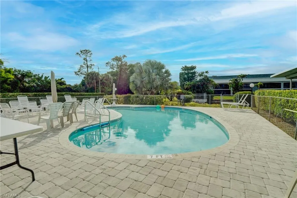 elements, creating a move-in-ready retreat. The community offers a sparkling pool just steps from your front door. Adding to its appeal, a new roof was installed in 2022. Large walk-in closet in primary suite, washer and dryer conveinately located on lanai, and a covered carport space. This lovely property is just minutes away from world-class beaches, golf, shopping, dining, and the charm of downtown Naples.
