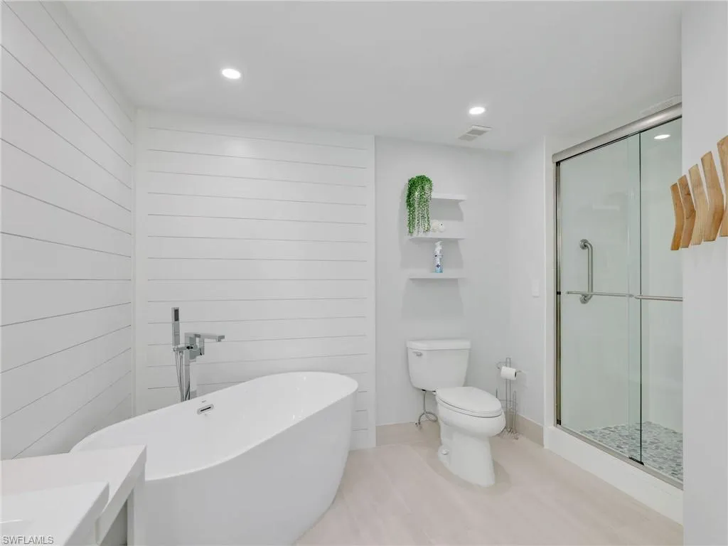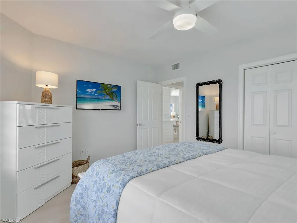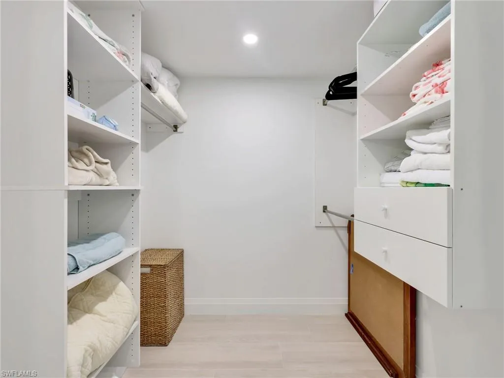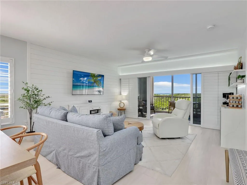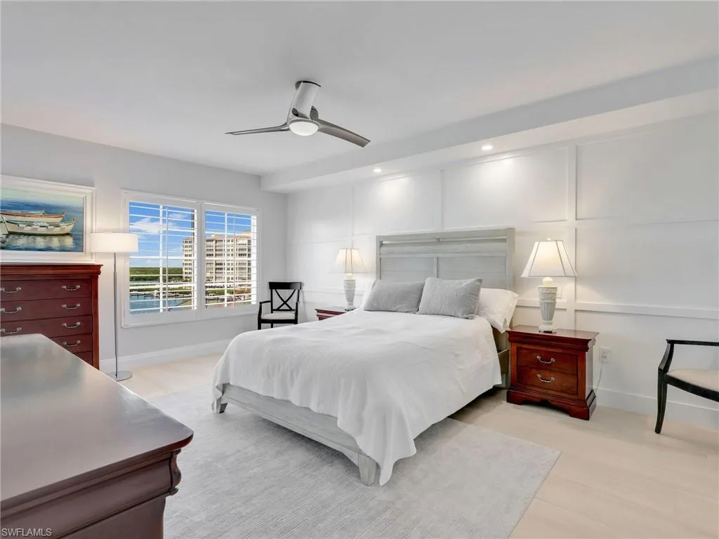 Sophisticated living and a fully renovated 6th floor END UNIT condo with direct gulf Access, no bridge. Experience the ultimate in luxury coastal living with this completely reimagined residence at the prestigious Marina Bay Club of Naples. Renovated from top to bottom in 2023, this designer-finished condo offers a rare opportunity to own what feels like a brand-new condo in one of North Naples’ most desirable waterfront and boating communities. Step inside to a bright, open-concept living space flooded with natural light, highlighted by impact-rated windows and doors, plantation shutters, and premium finishes throughout. The chef-inspired kitchen features elegant quartz countertops, newer stainless-steel appliances (2022), and sleek modern cabinetry, a perfect balance of form and function. Retreat to the tranquil primary suite with a custom-designed closet system and a spa-like bathroom. Every detail has been curated for comfort, style, and longevity. Enjoy uninterrupted sunset views, along with the convenience of a private under-building garage space, ample guest parking, and a private storage closet for your beach essentials. For the boating enthusiast: direct deep-water Gulf access via Wiggins Pass, Marina Bay Club is a hidden gem for boaters. Slips are available for lease or purchase placing you minutes from the open waters. Unmatched location: Ideally situated just off Vanderbilt Beach Road, you are minutes from sugary white sand beaches, Mercato’s upscale dining and shopping, Artis–Naples, and the best of North Naples. Marina Bay Club of Naples has front desk security and on-site personnel for peace of mind, is a GATED community that offers resort-style living with a sparkling heated pool and spa for relaxation, welcoming club room with regular community events, cozy fire pit perfect for family s’mores night, tennis courts with pickleball for active living, kayaking, paddle boarding. ***** THERE ARE TWO VIRTUAL TOUR LINKS YOU CAN CLICK ON FOR MORE INFORMATION. *****