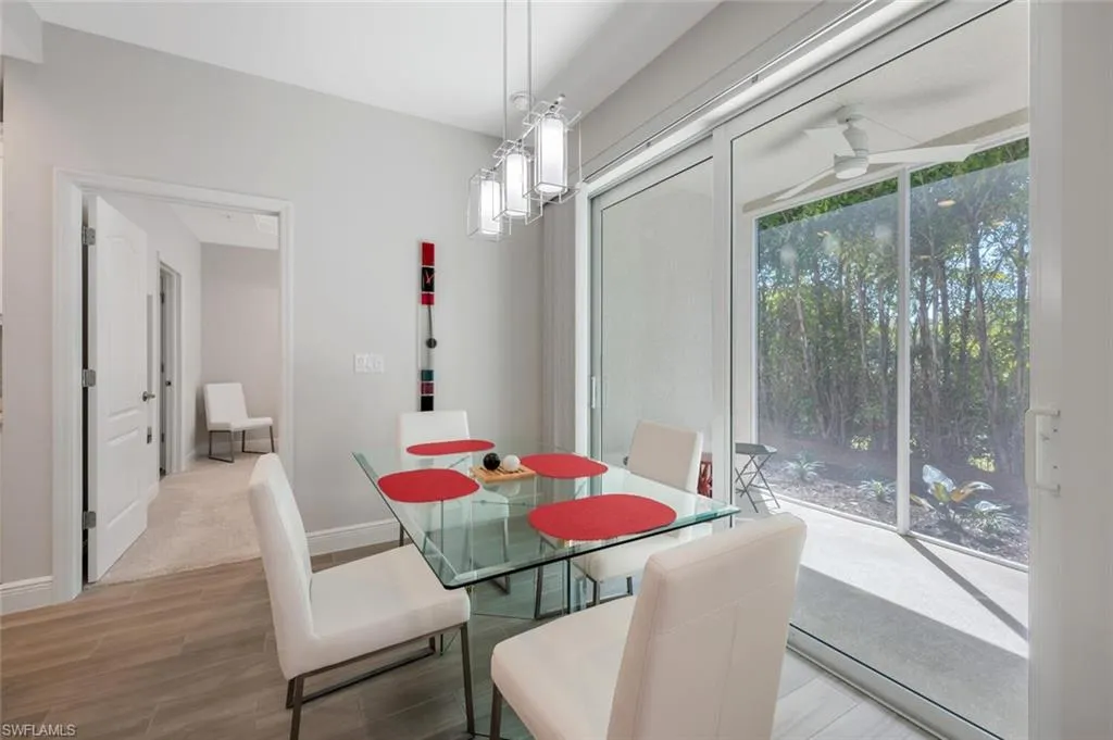 Stunning 2 bedroom 2 bath FIRST FLOOR – END UNIT coach home with 1 car attached garage has been meticulously maintained, and features many upgrades throughout including IMPACT DOORS AND WINDOWS. The spacious living area is open and bright, features plank tile flooring and a wall of sliding glass doors leading to the spacious private lanai. The open floor plan showcases a gourmet kitchen with a large island, white shaker cabinets, quartz counters, tiled backsplash & stainless steel appliances. Primary ensuite features dual sinks, large shower and walk in closet. Avalon of Naples is a gated boutique community featuring lush tropical landscaping, beautiful lake and preserve views, located minutes to downtown Naples 5th Avenue and 3rd St shopping, dining and beaches. Inquire about Interest Rate Buy Down Program!