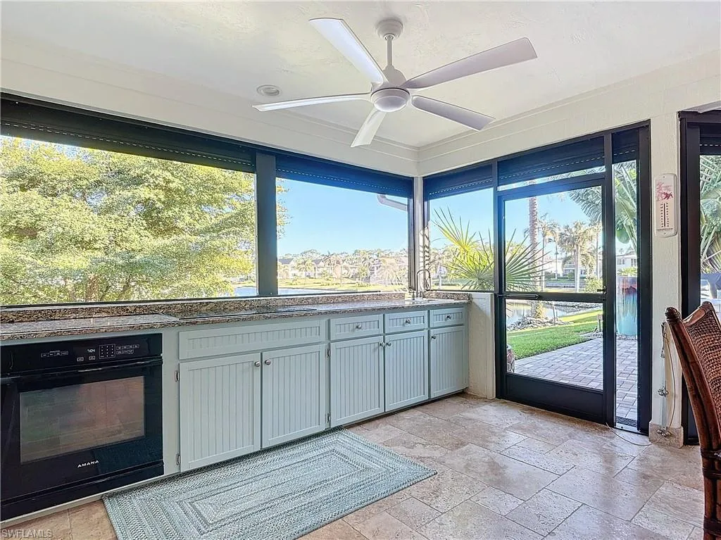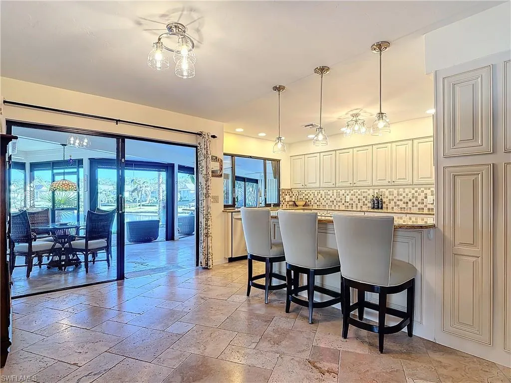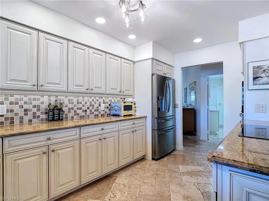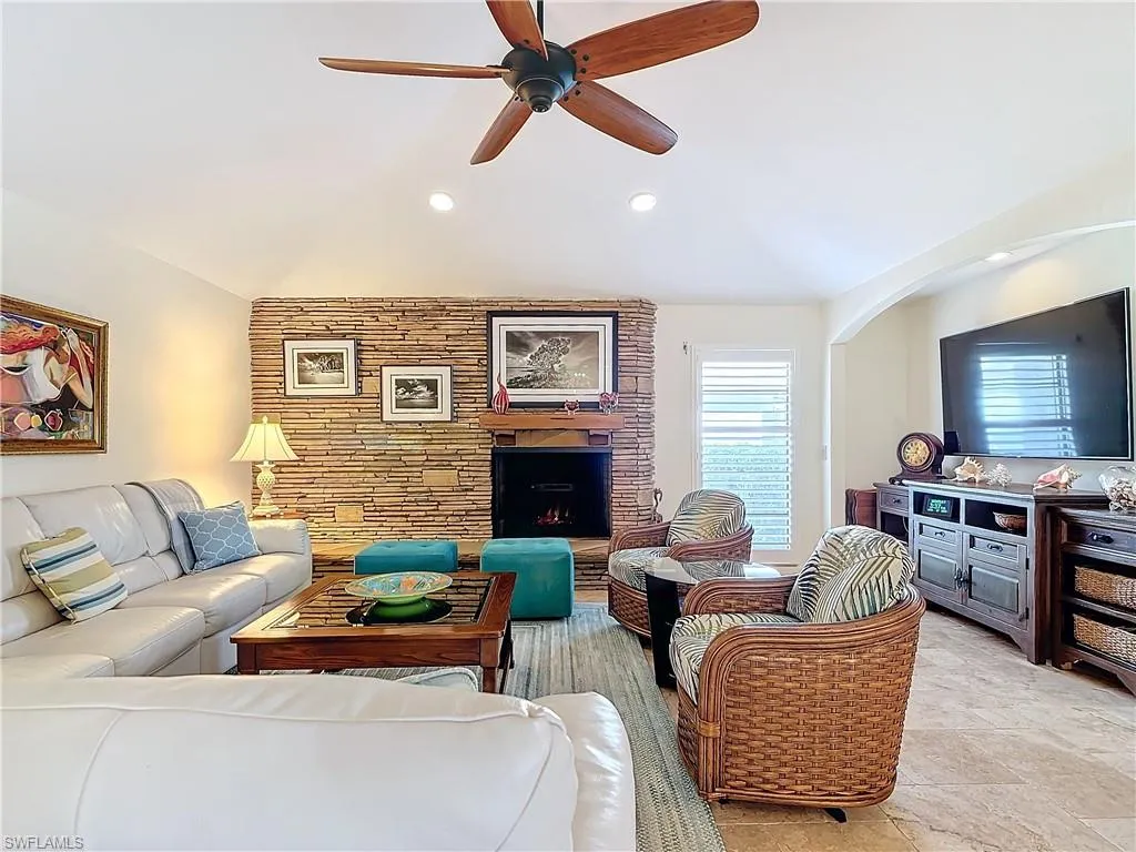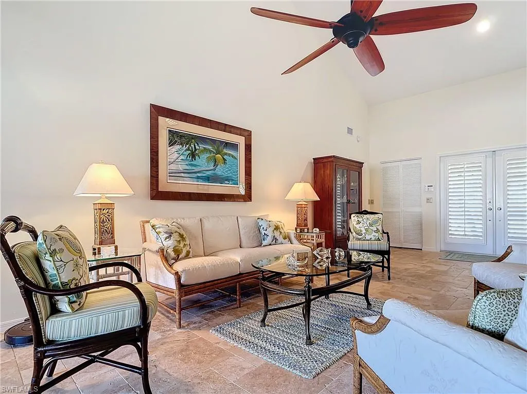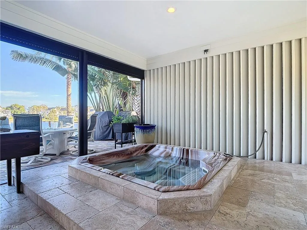 This home offers the best of both worlds. Single-family convenience without the responsibility of exterior and landscaping maintenance. Sought after eastern and western exposures, overlooking the vast open views of the shimmering lakes. Remarkably renovated to meet the needs of today’s discerning buyers! The kitchen features custom wood cabinetry, a Wolf induction cooktop, stainless steel appliances, stone countertops, wall ovens, breakfast bar with pendant lighting. The formal spaces include a light-filled living room and dining room with skylit vaulted ceilings, perfect for entertaining. The kitchen seamlessly flows into the great room area, featuring a functional fireplace. The great room provides abundant space for family and guests. The split bedroom floor plan provides privacy. A spacious primary bedroom with a luxurious bathroom, with direct access to the lanai and the secluded hot tub/spa. Two walk-in closets, double sink vanity, soaking tub, separate shower with body spray heads, and a bidet. The two additional bedrooms are designed to serve as a private guest suite or the perfect in-law accommodation, a pocket door secludes the suite, including the full bath with a step-in shower. The Double doors separating the bedrooms, when open, provide a bed chamber and a sitting room /den. Sliding patio doors open to the expanse screened lanai and paver patio. Travertine tile flows seamlessly throughout the common living spaces with beautiful hardwood floorings adorning all bedrooms. The expansive screened lanai, which runs the length of the home, features an outdoor kitchen, a Wolf induction cooktop, a built-in oven and a sink with hot running water, a dining area, a separate seating area with a wall-mounted television, and an in-ground hot tub/spa. The outdoor brick patio overlooks the sparkling lakes and provides abundant space for outdoor gatherings with family and friends. Recent improvements are too numerous to list! The oversized two-car garage has room for a golf cart and an epoxy-flake finished floor. The electrical system is generator-ready, plug-in and go! The lushly landscaped gardens and landscape lighting beautifully enhance and complete the residence. A harmonious blend of elegance and modern comfort nestled in the Royal Harbor area of Naples, the Community features include a heated and chilled pool providing perfect water temperature year-round. Tennis & pickleball court, shuffleboard court, and two EV charging stations.
