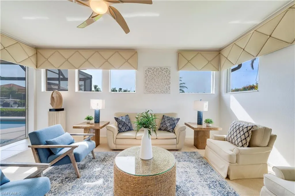 Direct Gulf Access, Western Views, Waterfront from Front and Back and NO FLOOD HISTORY! Welcome to a boaters dream in Catalpa Cove! This freshly updated home offers 2,738 sq. ft. of thoughtfully designed single-story living space, with 4 bedrooms, 3 bathrooms, & a tranquil outdoor oasis! The spacious floor plan lends ample room to spread out, entertain, and enjoy the Florida lifestyle in comfort and style. But the star of the show, is the waterfront views from both the front and rear of the home, with a dock and premium “high” boat lift which can hold a 10,000 lb. boat up to 32 feet long. With direct Gulf access, no bridges and absolutely NO flood history during recent hurricanes, this house is a hidden gem! From the front of the home you will enjoy a beautiful lake view, freshly updated landscaping, and charming curb appeal with a new roof and a courtyard-style driveway offering plenty of space for parking. Out back, the oversized lanai has a brand new clear view pool enclosure, has been freshly painted, and you have direct access to the dock. Inside, the home feels open and airy with volume ceilings and expansive pocketing sliders that bring the outdoors in. With fresh interior paint, new window treatments, updated lighting, and new hardware throughout. The kitchen features granite countertops, 42” upper cabinets, stainless steel appliances, and it opens beautifully into the breakfast nook and family room —making it a perfect setup for entertaining. The primary suite is oversized and includes a cozy sitting area with direct access to the lanai. There’s a massive walk-in closet and a spacious en-suite bath with dual vanities, a soaking tub, and a separate shower. On one side of the home, you’ll find two large guest bedrooms and a full bathroom. On the opposite end is a den or optional fourth bedroom with a closet—great for guests, a home office, or even a fitness room. There’s also a convenient pool bath located just off the lanai—so no tracking water through the house after a swim! Catalpa Cove is a hidden gem for boaters and water lovers. This gated community offers tennis, pickleball, a playground, a gazebo with restrooms, and even a commercial-grade ice machine—perfect for stocking your cooler before a day on the water. The HOA even maintains the dock. Now, not every home in Catalpa Cove offers the luxury of a private boat dock and lift directly behind the house. Some homeowners have to walk across the neighborhood or down the road to access their boat—but not here. Your dock is just steps from your lanai, making spontaneous trips on the water easy and effortless. Located just minutes from Sanibel, Fort Myers Beach, and great shopping and dining, this location truly has it all. Make this home yours! Contact us today for a private showing!