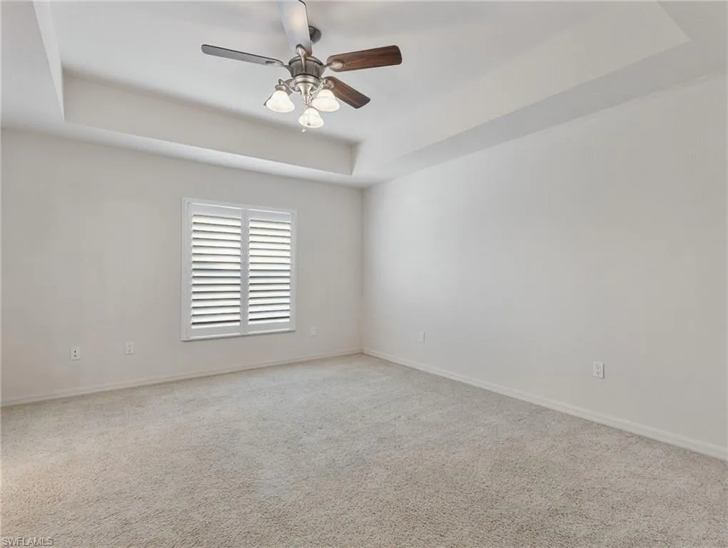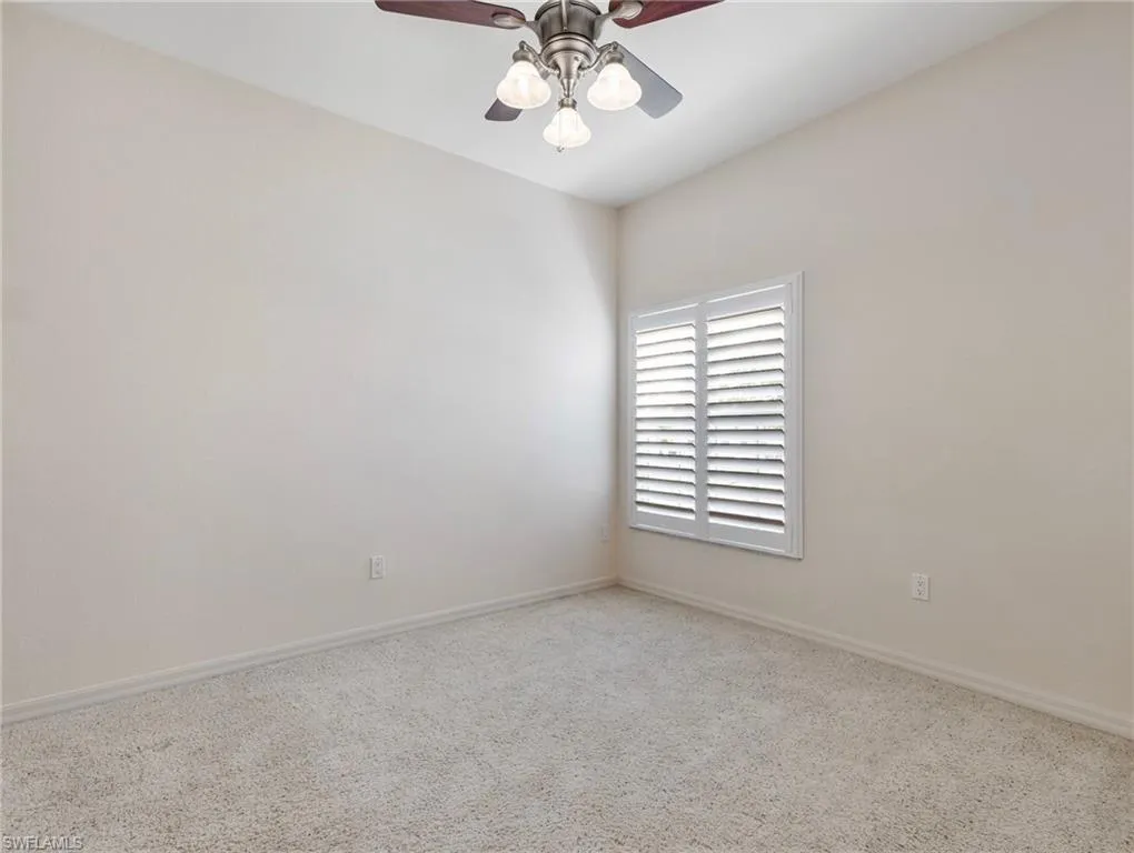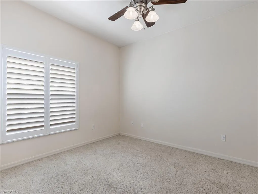 This bright 3-bedroom, 2-bath condo near the white sandy beaches of Southwest Florida features designer touches, volume ceilings, crown molding, plantation shutters, and neutral paint with tile and carpet flooring. It offers spacious living with preserve views from a private lanai. Recent updates including a 2022 AC and electrical panel, plus the Hot Water Heater is 2018. This quiet community also offers a 1/2 mile walking trail, pool, and fitness center, and is just minutes from world class dining, entertainment, and the SWFL International Airport. You are now HOME!