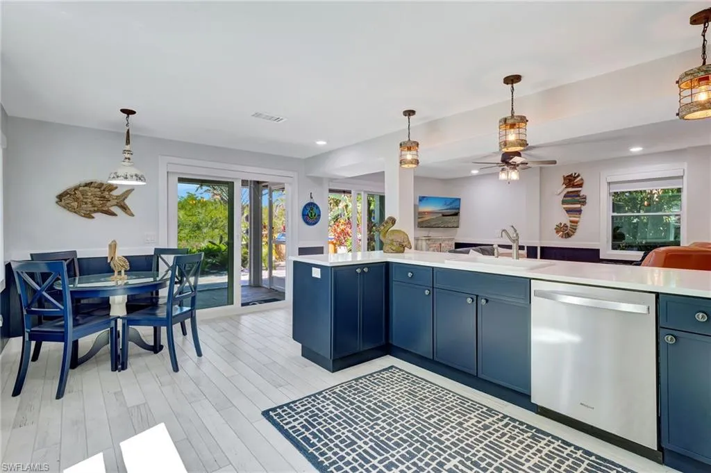 Gulf access!! Offering stunning panoramic views and convenient Gulf access, this home is a haven for waterfront enthusiasts. Get ready to be enchanted by this extraordinary property situated in a prime Naples location on the picturesque Cocohatchee River. Extraordinary income opportunity, pay for your second home while you’re away or bring the mother-in-law. With a private dock featuring a floating dock and canoe rack, you’ll have everything you need to effortlessly explore the serene and beautiful waterways of Naples. It’s not just a home—it’s a lifestyle where elegance meets adventure. Perfectly positioned for serenity and sophistication, this home boasts secluded surroundings while embracing full, uninterrupted water views and unparalleled beauty of nature. This exceptional property offers the unique potential for dual living spaces, perfect as separate living quarters or an inviting mother-in-law suite with a private side entry. Boasting modern upgrades and thoughtful details, this home is move-in ready and designed for convenience and comfort. Recent upgrades include new roof (2018), 2 new water heaters, a whole-house water filtration and softener system, and two highly efficient A/C units with a drip pump (3 yrs old) and new appliances. The interior features durable touches such as Styrofoam insulation, PVC baseboards, and hardy board throughout downstairs and garage, ensuring longevity and style. On the exterior, $40K was invested in drainage, while new impact windows and sliders and striking blue and white landscape lighting enhance the home’s curb appeal. Additional modern amenities such as a new screen enclosure, roll-down blinds, and plank tile floors create a perfect blend of style and functionality. The home is equipped with two fully functional living areas. Downstairs includes a complete Whirlpool appliance package, featuring a new refrigerator and dishwasher, complemented by a porcelain sink for everyday luxury. Upstairs offers real wood shiplap walls, a Bosch appliance package, a double porcelain farmhouse sink, and even a medicine cabinet for extra bathroom storage. Outdoor living spaces are equally impressive, with composite patio decking and a dock, along with a floating dock and a canoe rack for two. The property is finished with beautiful landscape irrigation and lighting on timers, a new screen cage and screening, and Pelican shutters. This home is more than just a house—it’s an opportunity for a versatile and luxurious lifestyle. Whether you’re envisioning a family retreat, a rental income generator, or a place to entertain or retire, this property has it all. The possibilities are endless!