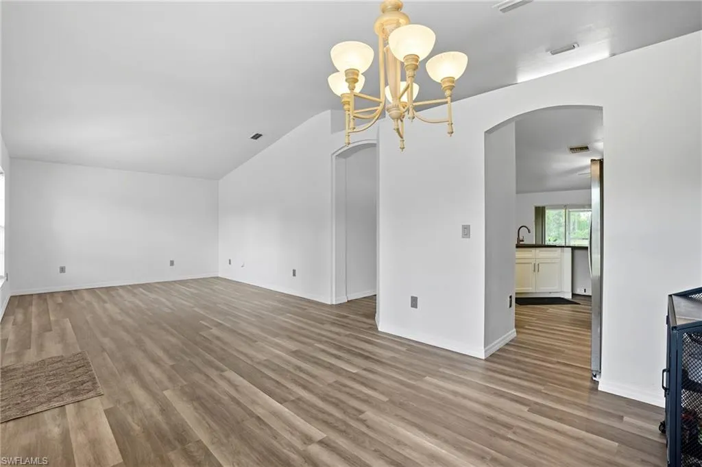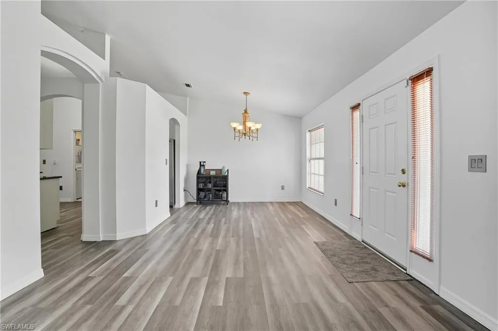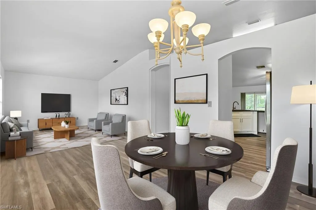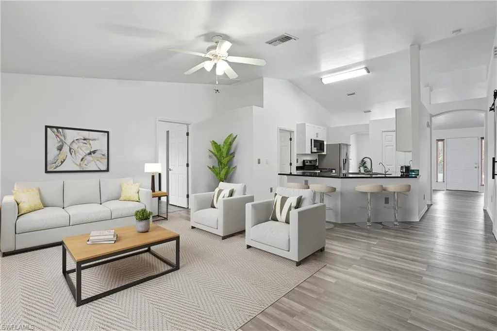 Step into this fully updated, toothbrush-ready Golden Gate Estates home where every detail has been taken care of. Situated on 1.14 acres of cleared land, this residence offers a peaceful country setting with no HOA while keeping you close to everything, just 5 minutes from shopping, parks, and nature trails and under 40 minutes to the beach. The home has been extensively upgraded for modern comfort and peace of mind. Major improvements include a 2023 energy-efficient roof and tankless on-demand water heater, a 2022 asphalt driveway, and a 2021/22 upgraded water system with softener and under-sink reverse osmosis. Inside, a full 2024 remodel brought luxury waterproof vinyl floors, fresh paint, modern smoke alarms, and updated outlets and switches throughout. The kitchen features new soft-close cabinetry still wrapped, granite countertops with seating area, Blanco sink, multifunction faucet, pop-up power and USB charging station, oversized refrigerator, Wi-Fi LG microwave, and a brand-new oven and range to be installed prior to closing. The guest bath was completely redone in 2024 with a European vanity, artistic glass sink, dual showerheads, metallic tile, and modern fixtures and has never been used. The primary suite offers a walk-in closet, double sinks, shower, and soaking tub. Guest bedrooms and the laundry room were refreshed in 2025 with new flooring, paint, lighting, and outlets. There are 2 living spaces and one can easily be converted to another bedroom to make the home 4 bedrooms without losing living space. Additional features include an oversized garage with RV and generator hook-ups, storm shutters, motion-sensor exterior lighting, and Ring camera hookup. The property currently neighbors 10 untouched acres for added privacy and has plenty of room to add a pool, outdoor living, or even space for horses. This home blends tranquility, thoughtful upgrades, and modern convenience.