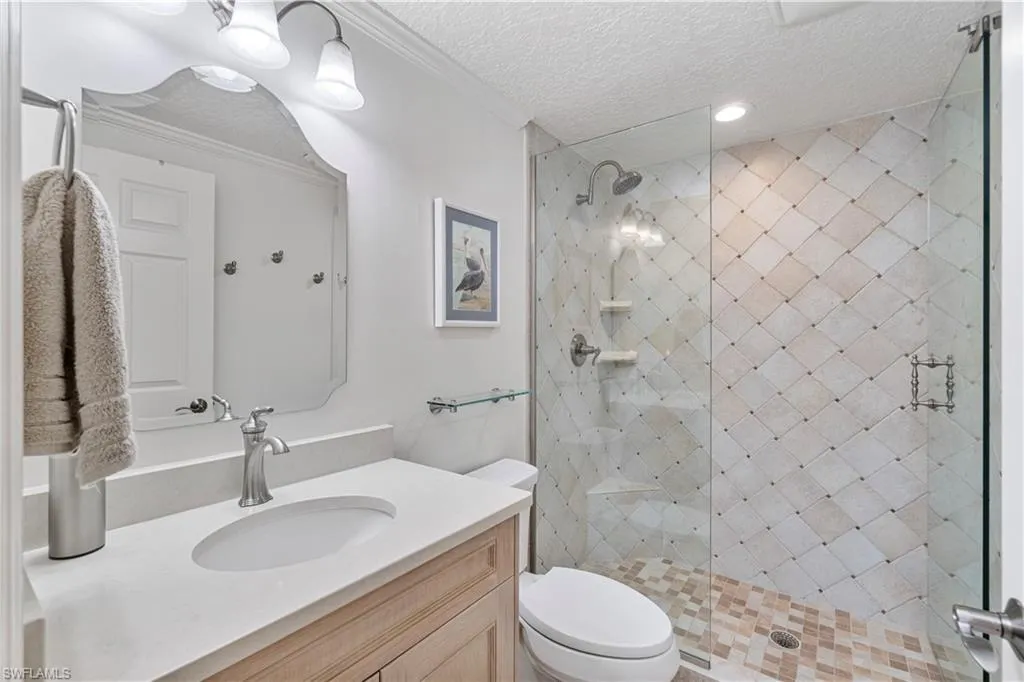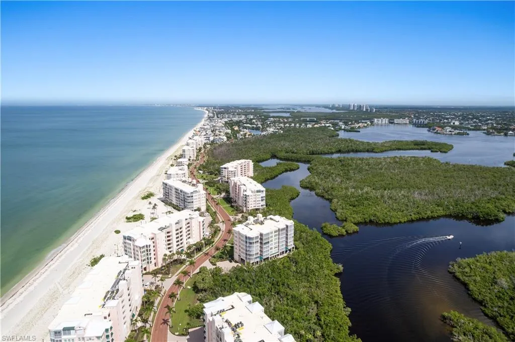 SKIP THE WAITLIST! THE CLUB AT BAREFOOT BEACH MEMBERSHIP AVAILABLE WITH THIS CONDO, SPECIFICALLY! A RARE & UNIQUE OPPORTUNITY! This beautifully updated 3 bedroom/2 bath unit has spectacular Bay views and is just steps from the white sands of Barefoot Beach. The spacious lanai is designed with both screens and glass sliders, allowing you to enjoy the fresh open air or transform the space into a sunroom-style retreat. Relax and unwind while watching boats sail by and dolphins, manatees, and ospreys enjoying the Bay waters. This stunning unit features a new roof on the building, new hurricane impact windows in the living room and sliding doors to the lanai (2022), an open floor plan with 2,102 sq ft under air, and tile flooring throughout. The chef’s kitchen features custom wood cabinetry, quartz countertops, and a breakfast bar, while the adjacent wet bar with built-in wine fridge makes entertaining effortless. The primary suite offers sweeping Bay views and a spa-like bath with dual vanities, a walk-in shower, and generous storage. Additional upgrades include electric remote-controlled sun shades in the great room and lanai, along with an EV hookup at the assigned parking space. Nearby to the BRAND-NEW CLUBHOUSE with state-of-the-art fitness center & resort-style pool. Barefoot Beach residents enjoy 3 miles of beach, 2 pools/spas, manned/gated entry & on-site mgmt. OPTIONAL “Club at Barefoot” offers tennis, 2 restaurants & beachside food/bev/chair service. Excellent Collier County location minutes to Mercato, Waterside & easy access to RSW Airport.