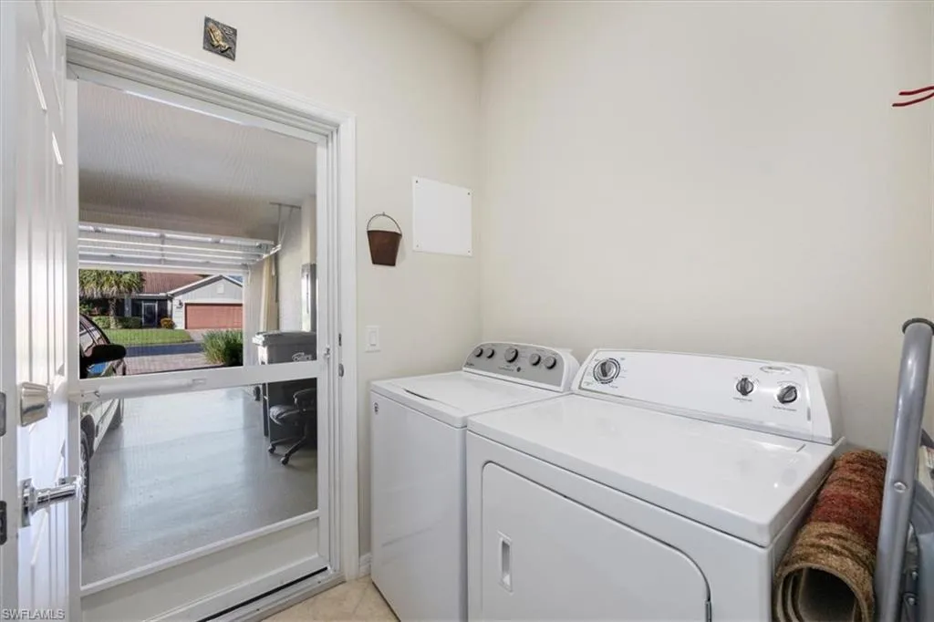 Welcome to this popular “Surrey Crest” 2-bedroom+den, 2-bathroom residence, built in 2011. Step inside and be greeted by a lovely screened in front lanai and a well organized interior floor plan. This home comes with a PAID CDD, UPDATED WATER HEATER 2019, WASHING MACHINE 2019, NEW REFRIDGERATOR 2023 AND NEW DISPOSAL 2024. Premium features include a golf course view facing east; laundry tub; screen door to garage area; upgraded window treatments; and a master closet outside the bathroom area! Enjoy the serene water view, landscaped for privacy from your bedroom window. The garage also features epoxy flooring. This home comes with a 1 year Silver Home Warranty. The Del Webb community offers a wealth of amenities, including a state-of-the-art fitness center, multiple swimming pools, tennis courts, pickleball courts, bocce ball courts, and a beautiful clubhouse. Enjoy walking and biking trails, and participate in various activities and events. Ave Maria offers excellent shopping and dining options, university cultural and sports events, and is just under an hour’s drive from Naples’ sandy beaches and shopping destinations. Don’t miss out on this rare opportunity to own a piece of paradise in this sought-after community.