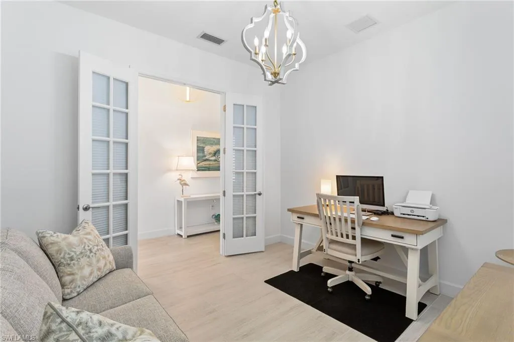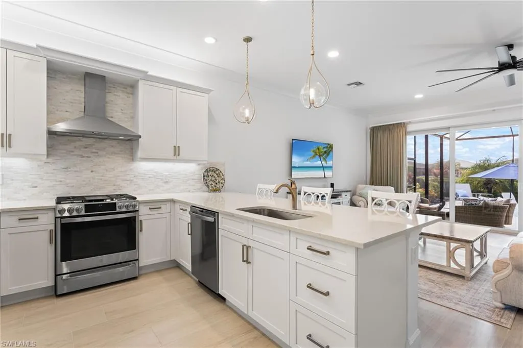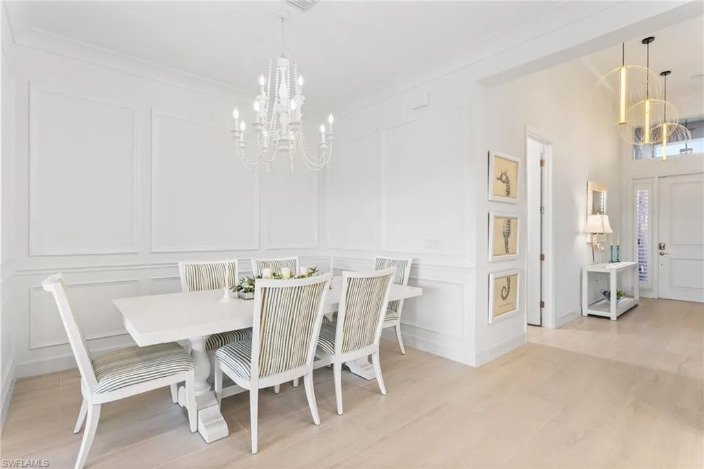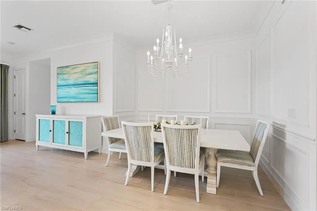 Welcome to 11555 Jacaranda Drive—an upgraded Flamingo model in Valencia Trails, Naples’ luxury 55+ community where resort living meets everyday ease. Set on a landscaped corner lot with a tranquil southern lake view, this home elevates outdoor living with a custom heated saltwater pool and spa, travertine patio, screened enclosure, and a fenced dog run beyond the cage. Inside, a smart 2-bed + den, 2-bath layout is finished with impact glass throughout, brand-new custom tile flooring, designer lighting, and tailored wall millwork in the dining area. The private primary retreat features two custom-built walk-in closets and a spa-like bathroom with upgraded Kohler toilets, new designer shower tile, and frameless glass. The chef’s kitchen checks every box: natural gas, stainless appliances, brand-new oven, outside-vented hood, built-in wine fridge, and GL Homes’ gourmet package—elevated cabinetry, crown molding, and statement lighting. Beyond the front door, Valencia Trails delivers a 43,000-sq-ft clubhouse with card rooms, an art studio, sports lounge, full-service dining (indoor/outdoor), lap/resort/resistance pools, spa, cabanas with food service, fire pits, and a full slate of social events—plus pickleball, tennis, and bocce for an active, friendly lifestyle. This is the Naples way of life—refined, low-maintenance, and ready now.