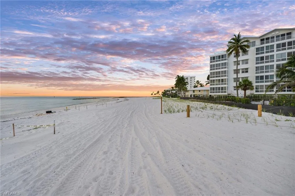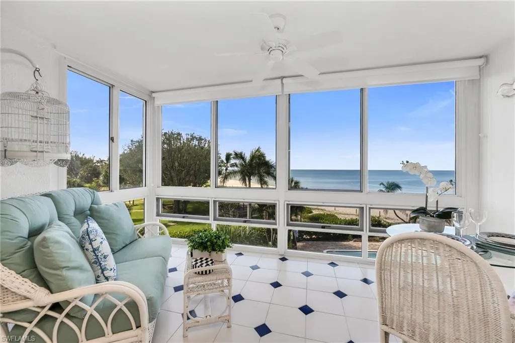Indulge in the ultimate beachfront lifestyle in this ideally situated 2 bedroom, 2 bath unit, perfectly positioned on the Gulf of Mexico in the coveted Moorings Beach enclave. With direct, panoramic views of sugar white sands and turquoise waters, this residence is a coastal gem offering direct beachfront access to one of the most open stretches of beach along Gulf Shore Blvd. Wall-to-wall, floor-to-ceiling sliders in the living room that open to a wide sunroom, offering seamless indoor-outdoor living and unobstructed Gulf views. The living and dining spaces feature a neutral, elegant palette, accentuated by coastal finishes and abundant natural light. The kitchen is white, bright and fully functional with ample storage and an easy flow making it ideal for preparing your beach walk morning coffee or a full meal! Primary suite is a serene retreat: offering direct Gulf views and a comfortably appointed en-suite bath. Lovely guest bedroom is generous in size, with large windows and close access to the second bath (which also serves as a powder bath for guests).Throughout the unit, tasteful coastal décor—such as light tile floors, creamy carpeting, and neutral paint enhance and emphasize this ideal beachfront setting. Royal Palm Club is a welcoming community offering private access to the beach which means your days begin with gentle surf and end with spectacular sunsets. Gulf-front pool and sundeck allow you to unwind steps from your door, with uninterrupted views of the Gulf. Covered and assigned parking plus individual storage and an immaculate common laundry ensure your convenience and security. Professionally managed, well maintained building with a responsive board and an onsite property manager reflects pride of ownership. RPC also offers an unbeatable Location: from your doorstep, you’re minutes away from: Venetian Village’s boutique shops and waterfront restaurants, 5th Avenue South & Third Street South with upscale dining, galleries, and nightlife, World-class golf courses, pristine parks, and cultural venues. Easily accessible to both Naples Airport and Southwest Florida International Airport (RSW)