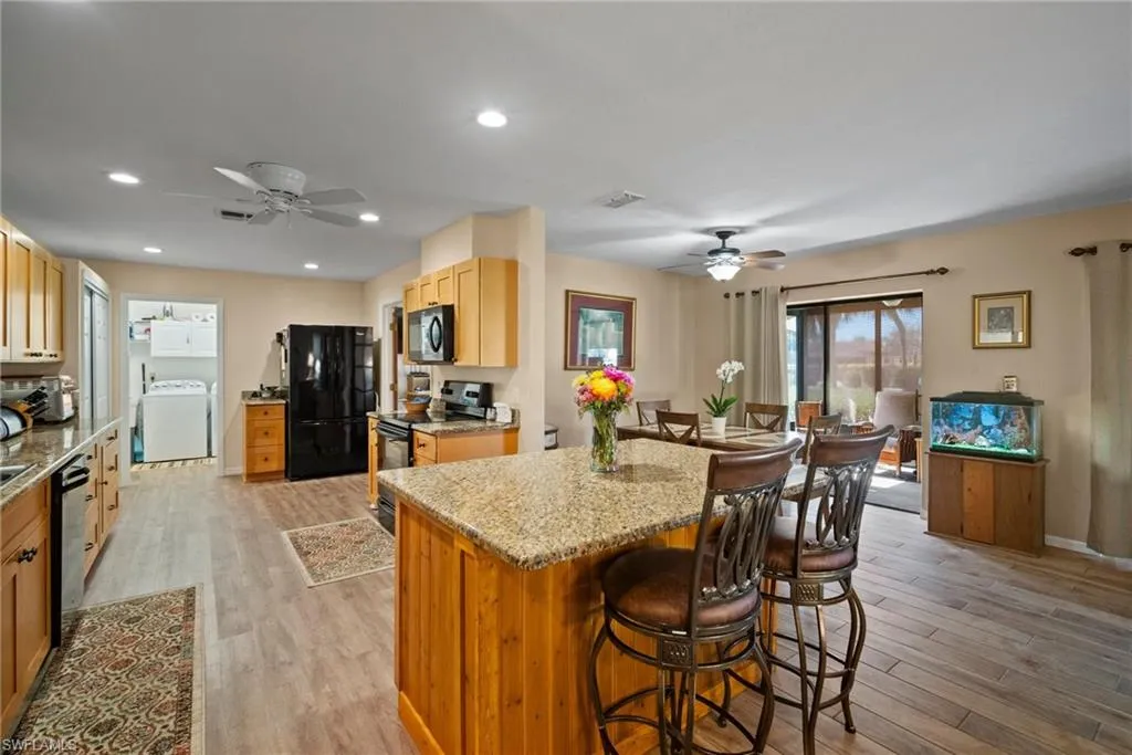 ABSOLUTELY MUST SEE!! 3BR, 2 BA, 2 Car Garage Villa in sought-after Section 14 of Whiskey Creek Village Green! This 55+ villa offers the perfect blend of privacy, convenience, and luxury. Tucked away in a peaceful, low-traffic area, this home is nestled within the newest and largest condo section in the community. Featuring a versatile third bedroom/den with closet and a convenient wet bar. Meticulously maintained, this home boasts updated wood-like tile flooring throughout the living areas and Luxury Vinyl in Kitchen and 3rd BR, sleek granite countertops with wooden, soft-close cupboards and drawers in the kitchen, a raised ceiling, and newer appliances. OPEN KITCHEN flows seamlessly into the living area, perfect for entertaining. The bathrooms have also been tastefully updated for modern comfort. Super Quiet inside! Enjoy the peace of mind that comes with brand-new, IMPACT WINDOWS ($18K Nov 2024) for a quiet, efficient, and protected living experience. Elec Shutters at front Entry and 3rd BR. The spacious two-car garage with pull-down attic stairs for additional storage, and an in-home laundry room for ultimate ease. Relax in the expansive Four-Season lanai (with removable windows) that overlooks a tranquil, lush grounds, one of the best views in the entire community! Close and private Heated Community Pool with fun planned gatherings and a circular walking path for you and your potential Pet! The well-managed Section is known for its healthy reserves and beautiful paver-brick driveways. Plus, with a golf cart-friendly atmosphere, affordable golf, and social memberships available at the nearby Whiskey Creek Country Club, it’s easy to enjoy all the amenities this area has to offer. Don’t miss out on this exceptional opportunity to own in one of the most desirable neighborhoods in Whiskey Creek! E Z Show. Always clean and waiting for your visit.