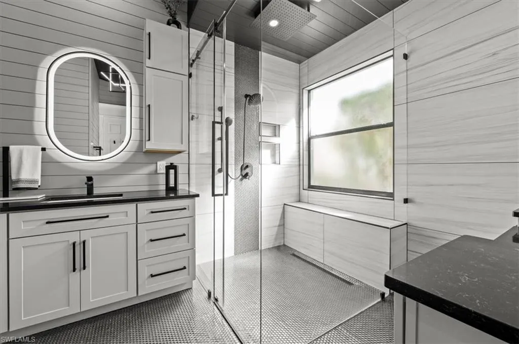 Welcome to one of the most impressive homes ever listed in The Shores at Berkshire Lakes! This fully renovated 3-bedroom, 2-bath home offers over 2,000 square feet of beautifully designed living space and is being sold fully furnished with premium brands. Brand new roof installed 2025. From the moment you walk in, you’ll notice high ceilings, custom woodwork, and an abundance of natural light. The interior features wide plank tile flooring throughout, custom cabinetry, quartz countertops, and a hidden butler’s pantry. The chef’s kitchen is outfitted with brand-new Wi-Fi-enabled appliances, while the living and dining spaces are accented with shiplap, custom paint, upgraded lighting, and ceiling fans. The luxurious primary suite is a true retreat with motorized shades, custom closets and drawers, and a stunning spa-like bathroom complete with a frameless glass shower. Additional highlights include a newer HVAC system, Tesla EV charger, and protective Trulock PVC flooring in the garage. Step outside to your private backyard oasis featuring a brand-new infinity-edge spa, oversized spa, sun shelf, and a screened lanai. The outdoor kitchen includes a large BBQ grill table and mounted TV, all with ideal southern exposure for all-day sun. Located in an X Flood Zone (high and dry), this home combines peace of mind with luxurious comfort. The Shores is a gated, amenity-rich community with extremely low HOA fees of just $367/month, which include cable, Wi-Fi, lawn care, irrigation, and security. Residents enjoy access to a clubhouse, fitness center, large community pool, tennis and pickleball courts, playground, billiards, ping-pong, and more. Conveniently located just minutes from Berkshire Commons with Publix, First Watch, Walgreens, and other everyday conveniences, and only 10 minutes to Downtown Naples, 5th Avenue, 3rd Street South, Naples Pier, and the beaches. This is a rare opportunity to own a move-in-ready, fully furnished, luxury home in one of Naples’ most desirable communities. Don’t miss out—schedule your private tour today!