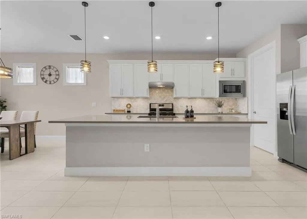 Best PRICED RIGHT IN BABCOCK RANCH WATERFRONT. Experience the pinnacle of waterfront elegance in this exceptional 3-bedroom, 2.5-bath residence perfectly situated on a premium lakefront lot in the heart of Babcock Ranch. Seller to assist with closing costs of $5,000 in the month of November only. Don’t miss out. Every detail of this move-in ready masterpiece has been designed for refined living from the soaring ceilings and sunlit open spaces to the awe-inspiring panoramic lake views that captivate from the moment you arrive. Step inside and be greeted by an atmosphere of serenity and sophistication. The expansive great room seamlessly blends indoor and outdoor living, with glass doors framing the tranquil water views beyond the enclosed, oversized patio an idyllic setting for morning coffee, sunset gatherings, or effortless entertaining. The chef-inspired kitchen features stainless steel appliances, a gas range with precise temperature control, a generous center island, and refined custom lighting and trim work that add both style and function. The primary suite offers a true retreat, complete with breathtaking lake views, dual walk-in closets, and a spa-like bath with a tiled walk-in shower. A versatile den with French doors and a full closet easily converts into a third bedroom or private office, while the guest suite provides comfort with a walk-in closet and a tub/shower combination. Additional luxury touches include: Extended two-car garage with room for a golf cart or workshop, Upgraded epoxy flooring in garage, 8-foot solid wood interior doors, Laundry room with utility sink and chute, and storm Hurricane shutters for peace of mind. Residents of Edgewater at Babcock Ranch enjoy exclusive access to a private heated pool, cabana, and lakeside fire pit, all within a secure gated enclave of just 168 homes. Lawn maintenance is included, ensuring a carefree lifestyle. Living in America’s first fully solar-powered town means enjoying sustainability without compromise — with access to miles of walking trails, fitness centers, parks, and multiple pools. The community’s elevation and underground utilities provide added protection from storms and power outages, while Founder’s Square offers vibrant shopping, dining, and year-round events just moments away. There will be other homes in Babcock that may suit you, but don’t miss your chance to see this one. It might just be the one. Discover the perfect balance of luxury, comfort, and community in this remarkable lakefront home.