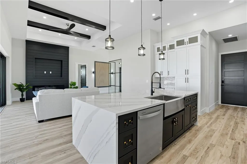 This Toto Custom Homes model home is a 3 bedroom, 3 bath, den, saltwater pool home with a 3 car garage and all the bells and whistles. This is the builder’s model home. 2195 Sq Ft od luxury finishes including solid wood cabinets throughout with Cambria Quartz countertops. The glass corner wall den with glass sliding barn door give this home the open feel for entertaining your guests. Hidden walk in pantry, full stainless appliance package including front loader washer and dryer with pedestals, double wall oven, 36″ cooktop with vented hood. Frameless shower doors, 12′ ceilings with 8′ interior solid core doors. New vinyl PVC fence, flora-tam sod with sprinklers, epoxy garage floors, insulated impact garage doors with glass windows are just a few interior features. Behind the scenes are PGT windows and doors with 90-degree sliders, Standing seam metal roof, spray foam insulation, insulated exterior walls, whole house reverse osmosis system, 18 SEER HVAC, smooth finish walls and ceilings. Shiplap fireplace wall, porcelain baths and LVP flooring throughout the home. This house is a showstopper and will not last long at this price. 2-10 Builders warranty included. You do not want to miss this one!!