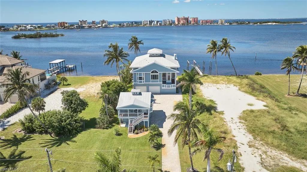 This is the Fort Myers Beach property that truly has it all—bayfront luxury with Gulf views, oversized grounds, income potential, and resort-style amenities. With 7 bedrooms, 5 bathrooms, and an elevator, this exceptional estate is designed for both comfort and convenience, offered fully turnkey. The main residence rises three levels above a private apartment that opens directly to the heated pool and jacuzzi. Multiple balconies and screened decks capture long water views, while the top-level bedroom lookout provides a panoramic perspective of both Estero Bay and the Gulf of America. A wood-burning fireplace adds warmth and character to the spacious living areas. A separate guest house with its own garage sits at the front of the property and is currently leased to a long-term tenant, delivering a proven consistent annual rental income. The main home also offers excellent rental income, making this both a lifestyle retreat and a smart investment. Boaters will appreciate the private dock, complete with a captain’s walk and a 10,000 lb. boat lift—ideal for quick access to open water. The oversized lot enhances the estate feel, providing rare space and privacy on Fort Myers Beach. Perfectly located to avoid the heavy beach traffic yet just minutes from the shoreline, dining, and entertainment, this property offers the best of island living. With unmatched views, exceptional amenities, and turnkey convenience, this is one of the most remarkable opportunities on Fort Myers Beach.
