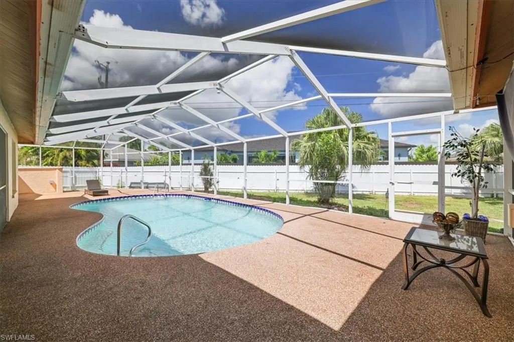 This exceptional 3-bedroom, 3-bath pool home with a den is truly a rare find! Recently repainted and impeccably maintained, it features a carefully curated color palette that blends modern style with timeless charm. The spacious split-bedroom layout offers both comfort and functionality, complemented by impact-resistant windows throughout. The master suite is a private retreat, with sliding doors that open to a serene screened courtyard on one side and direct pool access on the other. Its spa-like bathroom includes a soaking tub, dual vanities, and a separate shower. Situated on an oversized lot with a fenced backyard, this home also boasts a circular paved driveway and a fully permitted den conveniently located next to the main entrance. A perfect balance of elegance, comfort, and practicality—this home has it all!