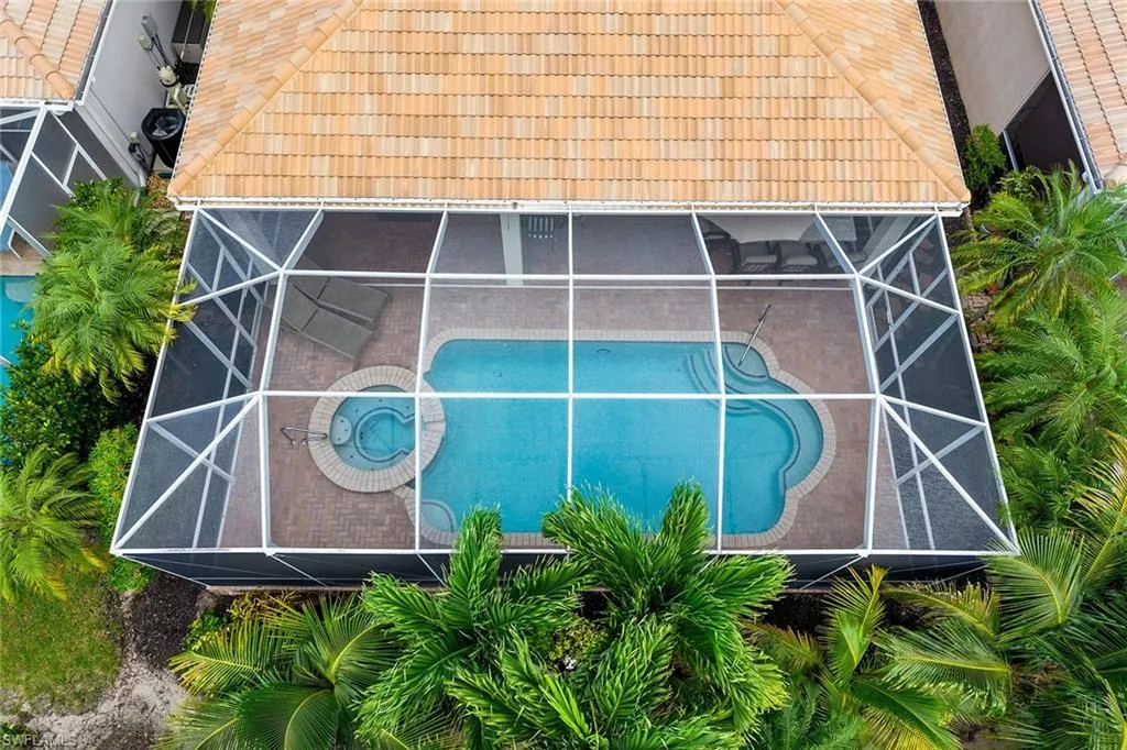 Rarely available Portofino model in Glen Eagle Golf & Country Club, this 2 bedroom + den, 2 bath Naples pool home offers 2,124 sq. ft. of refined living with crown molding, coffered ceilings, plantation shutters, tile roof and two EV chargers. The open floor plan extends to a private lanai with heated saltwater pool, spa, screened enclosure, and custom LED lighting, an outdoor retreat designed for year-round enjoyment. The primary suite features coffered ceilings, a walk-in closet, and direct pool access for seamless indoor-outdoor living. A Social Membership is included, providing access to the clubhouse, dining, fitness center, tennis, pickleball, bocce, community pools, and a full calendar of events, with golf available May through September. Located in a gated Naples golf community just minutes from 5th Avenue South, Naples Pier, Gulf beaches, luxury shopping, and fine dining, this residence offers resort-style amenities and the ultimate Florida lifestyle, ideal for seasonal or full-time living.