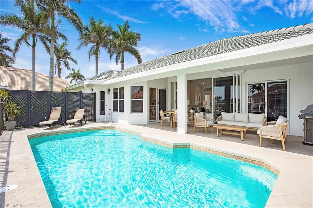Step outside to your private lanai and soak up the Florida sunshine by the large in-ground pool. Boating enthusiasts will appreciate the new 10,000-pound boat lift and quick access to the Gulf. The privacy fence ensures your outdoor oasis remains serene and secluded. Ideally located, this home offers easy access to Resident’s Beach, the new Publix, YMCA, and a variety of restaurants and shops. Whether you’re looking for a relaxing retreat or an active lifestyle, this Marco Island gem has it all. Come relax and enjoy life in sunny Florida!