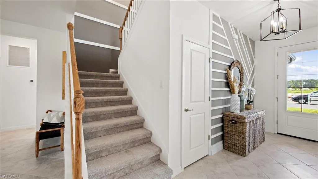 Brightwater Lagoon is a master-planned community of new homes in North Fort Myers, FL — where life feels like an endless day at the beach. Imagine sipping a refreshing drink on sandy shores, gazing out at crystal-clear blue waters — all embraced by graceful palm trees. A spacious two-story, this home features a modern layout on the first floor that incorporates the breakfast nook, kitchen and Great Room, with access to the impressive lanai. Framing the space are a secondary bedroom perfect for guests and a separate formal dining