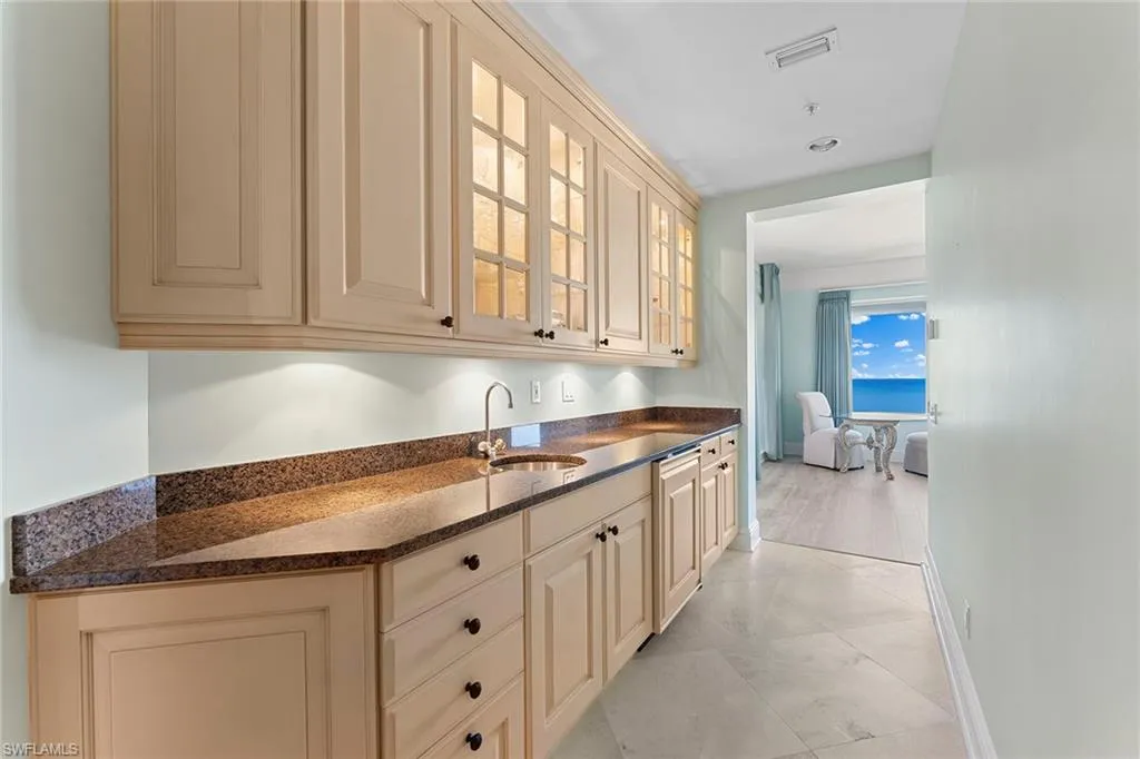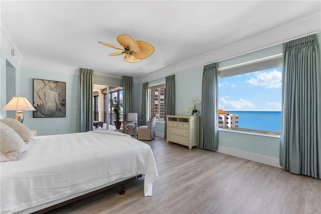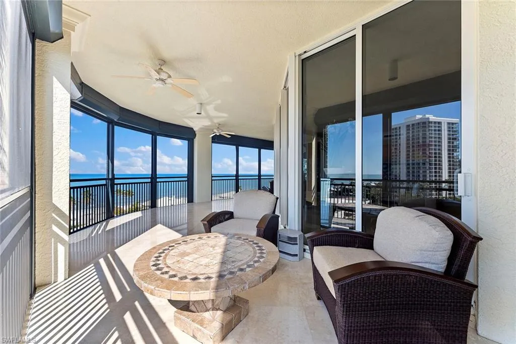 Presenting a sought-after southern facing, eighth-floor condominium in the prestigious Seasons at Naples Cay building, offering breathtaking views of the Gulf and Venetian Bay. This spacious, light-filled residence features over 4,700 square feet of living space, including three oversized bedrooms plus a den, and two expansive screened balconies, ideal for capturing stunning sunrises and serene sunsets. Designed for elegance and comfort, the home boasts marble flooring throughout, a gourmet kitchen and two generous living areas, creating the ambiance of a private single-family home. Additional highlights include two parking spaces plus additional storage and exclusive access to Seasons world-class amenities, such as a state-of-the-art fitness center, resort-style pool and spa, billiards room and 24/7 staffed gate. Ideally just a short walk from Waterside Shops and Artis–Naples, this residence offers the ideal blend of luxury, convenience and breathtaking coastal living.