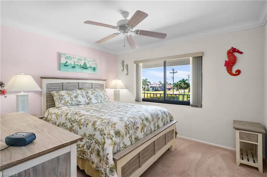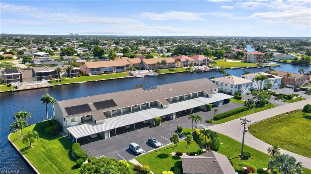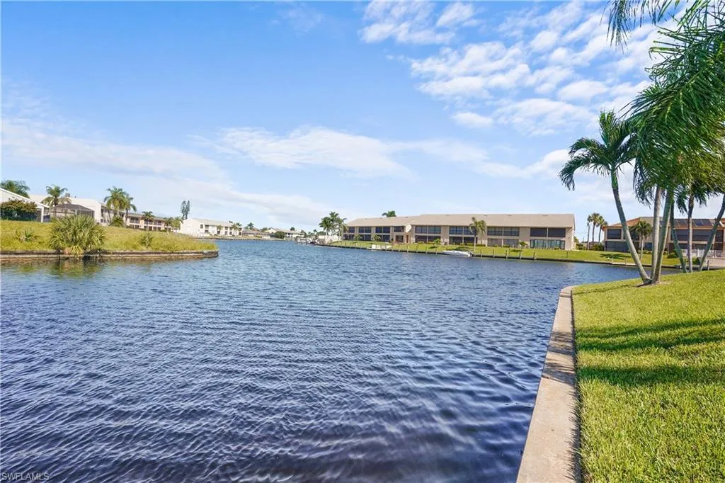Calling all boaters. This cute, crisp and clean 2 bedroom 2 bath condo is located on the Rubicon canal in desirable SE Cape Coral. Condo comes with boat slip on a first come first serve basis. NO FLOOD INSURANCE REQUIRED. This unit has the best views of the canal from the screened lanai as well as the master bedroom. Newer hurricane impact windows in bedrooms. Newer water heater and hvac. 2 storage units, one on lanai and other located in covered carport. Complex has gorgeous pool that offers great views of cross canals and spectacular sunsets. Building has brand new roof and carports. In unit full size washer and dryer. No pets. No leases for the first 2 years of ownership.