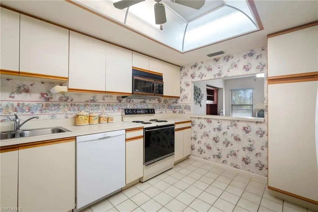 Charming 2-Bedroom Condo with Lagoon Views – This beautiful second-floor condo offers a spacious 2-bedroom layout with an open-concept den, ideal for a home office or additional living space. The huge primary bedroom is a standout, featuring a large walk-in closet and an extra vanity for added convenience, plus extra room for a sitting area next to your very own sliding door to the lanai. The bright and airy kitchen boasts plenty of cupboard space, ideal for those who love to cook and entertain. Plus, enjoy the added convenience of an in-residence laundry area. Enjoy stunning Lagoon-style, Lake views from your screened lanai, complete with peaceful water fountains. The well-maintained three- story building features an elevator for easy access, and your own covered parking spot is conveniently located along with an extra storage closet. Electric and manual HURRICANE SHUTTERS provide protection and peace of mind. The complex boasts resort-style amenities, including a tennis/pickleball court, swimming pool and shuffleboard, perfect for both relaxation and recreation. Fees include your basic Cable/Internet along with Water and Sewer. Indoor Pets are welcome but no dogs (unless Service animal as per ADA guidelines) -Please see rules for more details. Located in a prime area, this home provides easy access to local conveniences, making it an ideal choice for those seeking comfort, tranquility, and an active lifestyle.