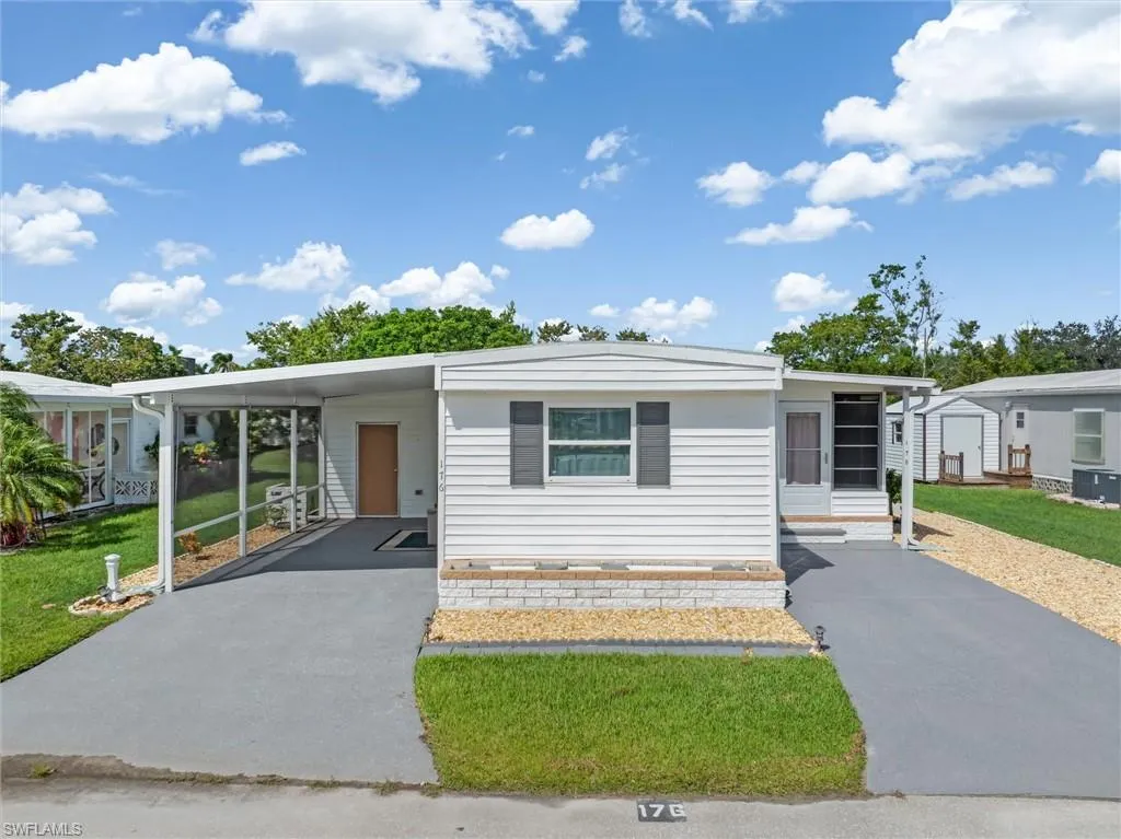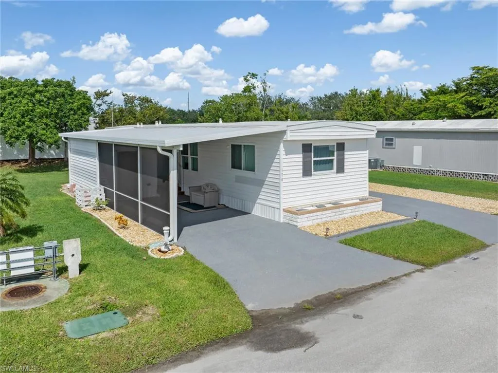 This perfect little Southwest Florida getaway is waiting for you in Alligator Park, a wonderful 55+ community, in Punta Gorda. NO LOT RENT HERE, instead you pay a reasonable monthly amount of $298 that covers water, sewer, trash and recreational amenities. The park is also NOT IN A FLOOD ZONE andis TURNKEY & READY & WAITING! There are numerous updates to mention including the bigger ticket items like a NEW 2023 ROOF INCLUDING THE CARPORT AREA, 2024 WATER HEATER, & 2020 A/C with UV light, WATER FILTER, and updated ELECTRICAL PANEL. This 2 bedroom/2 bath home feels spacious with the extra 11’ x 35’ living area that’s part of the air-conditioned space. You can use the room for multiple purposes including dining, den, and space for visiting guests. The larger bathroom had a new walk-in shower installed in 2024. There are 2 places to park your cars, one approx. 11’ x 28’ and the other approx. 11’ x 37’, both refinished this year with a gorgeous dark grey epoxy flake finish. A 12’ x 16’ shed is at the end of the carport area. The PRICE OF THE HOME INCLUDES THE PARK SHARE OWNERSHIP OF $60,000. Golf carts are not only allowed but encouraged in this fun community. Your social life can be as active as you desire with numerous park activities. Alligator Park is also only a few miles from beautiful downtown Punta Gorda and the Punta Gorda Airport. Ask for additional information on all the furniture and other furnishings that will be included!!