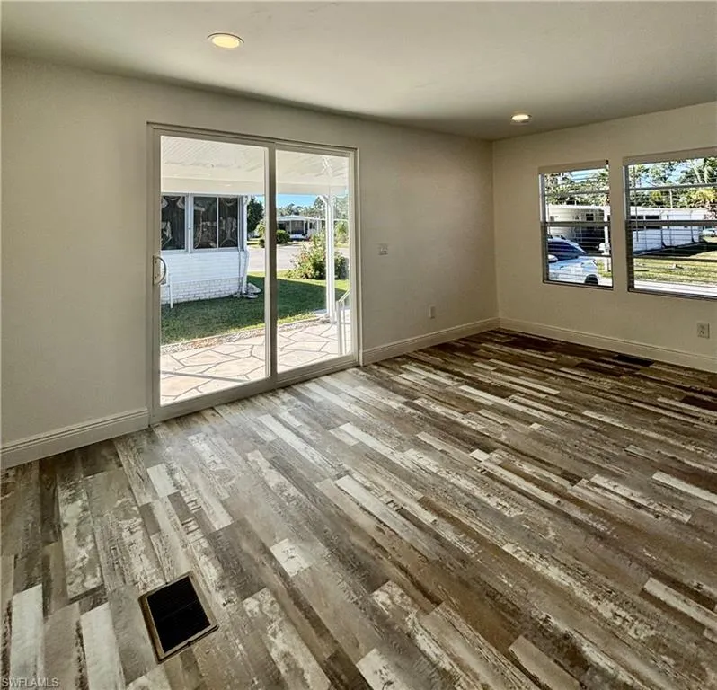 BEAUTIFUL, RENOVATED 2/2 GEM IN 55+ FOREST PARK MOBILE HOME COMMUNITY. The stunning workmanship shines in this gorgeous home. The luxury vinyl plank (LVP) flooring known for its beauty and durability is supported throughout by 3/4″ sub flooring. Drywalled and lightly textured ceilings and walls add to the overall upscale look of the home. The beautiful granite kitchen comes with custom backsplash, soft-close cabinetry, overhead lighting, island breakfast bar, and gorgeous stainless appliances. The indoor laundry area includes attractive, newer washer and dryer. The many upgrades include a newer roof, A/C, plumbing, wiring, attic insulation with vapor barrier, carport, and gorgeous bathrooms with custom showers. The master bedroom en suite has extra wide entry doors, vanity, shower area, and a huge walk-in closet. Forest Park offers some great amenities with affordable hoa fees ($116.80/month), free wifi, land ownership, community swimming pool, clubhouse, shuffleboard, pickleball, holiday dances and parties. You’ll love this home and you’ll love Forest Park. Come and enjoy the Florida sunshine in your new home! Call today!