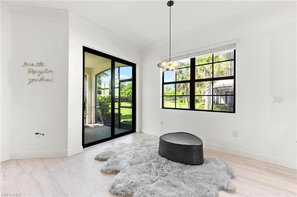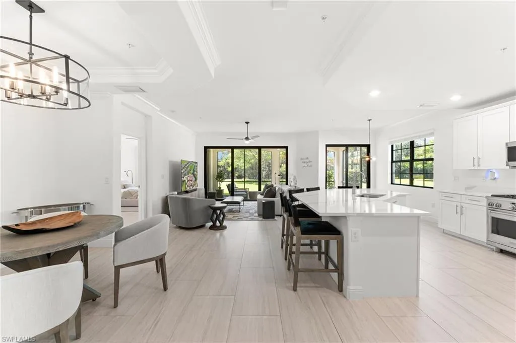 Golf enthusiasts will appreciate the acclaimed 18-hole Greg Norman & Pete Dye championship course, ranked among Florida’s Top 20 by Golf Digest. Beyond golf, residents enjoy a sports complex with tennis, pickleball, bocce, dog parks, scenic walking paths, a resort-style pool, lap pool, kids’ playground, and even a Beach Runner shuttle to Vanderbilt Beach, complete with towels, chairs, and refreshments. Personal golf cart privileges allow effortless movement throughout the community.