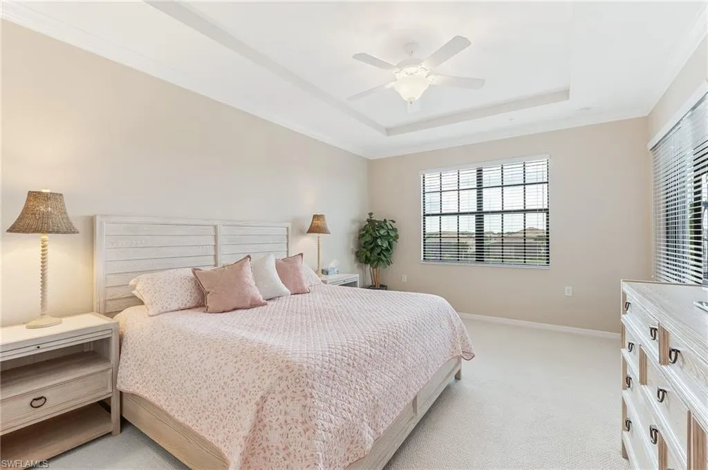 ONE OF THE BEST LAKE/WATER VIEWS IN PELICAN PRESERVE. . . Perfectly positioned with a short walk to Casella’s Community Pool, this spacious, second floor unit w/private elevator spans over 2,500 total sq. ft. The bright and sunny unit with its volume, tray ceilings feature updates of new interior paint throughout with soothing shades of all-natural hues to compliment the negotiable brand-new coastal furnishings and beautiful new carpet flooring. The open concept designed kitchen has premium stainless-steel appliances; 42″ white cabinets; counter bar island seating; large walk-in pantry with custom built-in shelving; and beautiful white quartz counter tops w/new tile backsplash. Multiple sets of sliding glass doors lead out to the covered lanai w/new tile flooring + electric hurricane shutters. The enclosed, screened balcony offers endless, panoramic sunsets captured by its coveted western facing lake view. A two-car garage with added storage hooks and shelf + laundry room with new cabinets and sink complete this unit with flexible storage space options. Perfect for anyone seeking a second home or as a permanent residence. . . this home invites true resort-style living and an elite lifestyle in an amenity rich, active 55+ community. Go to www.PelicanPreserveLifestyles.com to check out all of the Town Center’s community offerings of multiple sports, arts & crafts activities, social clubs, indoor movies and live concerts. Truly a coastal get-a-way you’ll love coming home to.