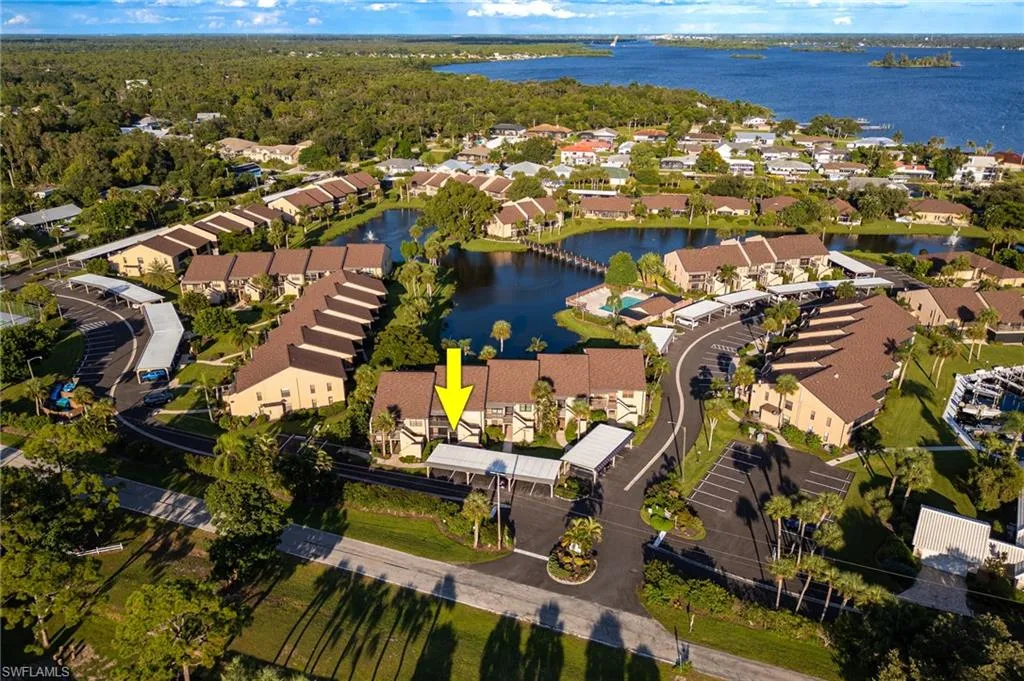 You Are Not Going to Find A Better Deal Than This! Turnkey, Tastefully Furnished, Move In Ready. Completely Updated, First Floor 2/2 Condo located in Admiralty Yacht Club. Just bring your clothes. Nothing else needed. Newer Custom Wood Kitchen Cabinets, Stainless Steel Appliances, Eat in Kitchen, Granite Counter tops and washer and dryer included All New modern tile showers and Granite Counter top Vanities in both bathrooms. Dual Sinks and large walk in closet located in primary bathroom. No Carpet, Attractive Tile Flooring Through out! Totally re-piped in 2019! AC and Hot Water Heater replaced in 2023. Admiralty Yacht club is a boating community located directly on the Caloosahatchee River. Snug Harbor for the boat owner and Boat docks are available to lease or purchase. Direct Access to the River. The grounds are tastefully landscaped and views of the River, great for early morning walks. This Condo has a beautiful view from the Over-sized screened in covered Lanai of the Pond and Pool Area and screened in Front Porch. Wonderful place to sit with your morning coffee or evening cocktail. The unit has its own private covered parking space. Two Outside Storage Areas. Easy Access to the Community Heated Pool. Other amenities include a Fishing pier for the avid fisherman, an active Club House, Tennis and Pickleball Courts. Admiralty Yacht Club is convenient located only 25 minutes from the International Airport, close to shopping, restaurants, the Downtown area and I 75. If you are looking for a Condo located in a boating community and is Affordable then this Condo is perfect for you!