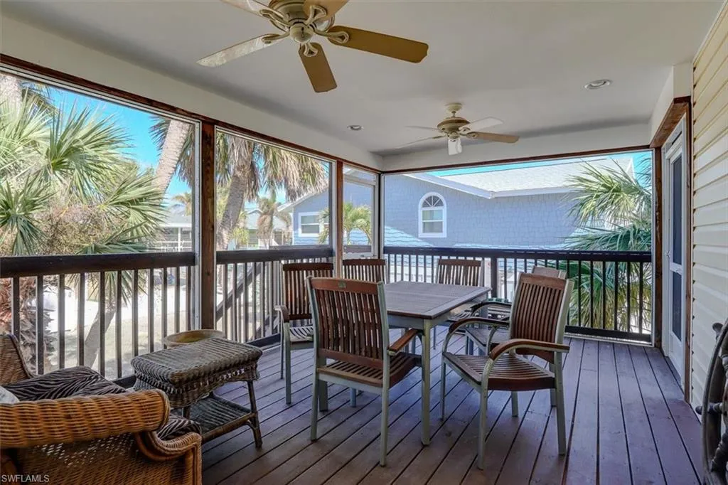 Discover your dream coastal retreat! Tucked away at the end of Gulfview Avenue, this luxurious furnished home offers ultimate privacy, stunning bay views, and easy access to Fort Myers Beach’s iconic sugar sands. Just minutes from shopping, marinas, and dining, this rare gem is perfect for both relaxation and entertainment. Built on pilings (9 foot) for added stability and piece of mind. Best of all this home is ready for immediate occupancy, it features 3 spacious bedrooms, 2.5 baths, and plenty of room to add your dream pool. The chef’s kitchen, updated with quartz countertops and stainless steel appliances, is a culinary masterpiece. Enjoy year-round comfort with a newer A/C (installed Feb 2024), and ample storage for all your beach gear below. Ready to move in—just bring your bathing suit and relaxation will follow!