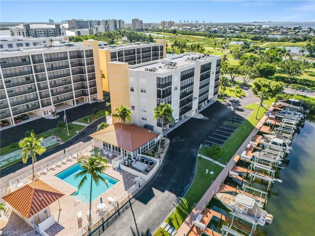 Great investment opportunity at Hibiscus Pointe! This 2bed/2bath condo odffers a split bedroom floor plan perfect for entertaining guests. The primary bedroom features a large walk in closet and ensuite bathroom. Enjoy watching the dolphins and manatees from the oversized lanai! Have peace of mind with electric storm shutters. Condo includes extra storage cage, under building assigned parking and guest parking. Perfectly located on the south end of Fort Myers Beach close to Santini Plaza, restaurants, Lover’s Key State Park, easy access to RSW Airport, Bonita Springs, and Naples. Boat docks are available for sale. Community Amenities: Pool, shuffleboard, car wash area and guest parking. EBIA amenities: tennis courts, pickleball, fishing pier, beach parking, walking paths, chipping greens, golf driving cage and DEEDED Beach access.
