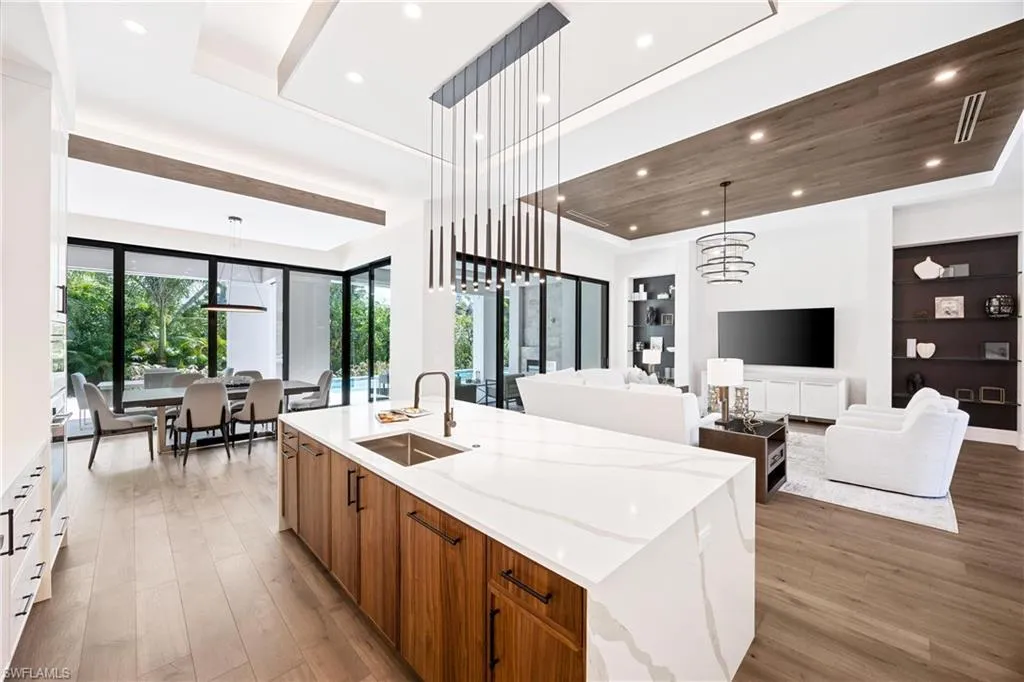 Presenting a stunning 4430 sq ft new construction residence in the highly sought-after community of The Moorings. Impeccably designed with the highest standards in mind, this partially furnished 4 en-suite bedroom home with den offers refined elegance, exceptional upgrades, and a layout ideal for upscale Florida living. From its striking elevation to the luxurious interior finishes, every detail of this home is crafted for comfort and sophistication. Main highlights include: First-floor primary suite with direct access to the gas-heated pool and spa, an expansive covered lanai, a chef’s kitchen featuring Wolf gas cooktop, Sub-Zero refrigeration, an outdoor kitchen & fireplace powered by a 500-gallon propane tank, designer-appointed wet bar – a true showstopper. The second level is not to be missed~ a spacious family/media room, two additional en-suite guest bedrooms, second laundry, sitting area, and private outdoor lanai adds welcomed privacy for all your guests. Built for Peace of Mind~ All impact-rated windows, doors, and 3 car garage, electric roll-down bug screens on the lanai, and generator-ready infrastructure in place. Accessibility meets luxury with a grand staircase and private elevator, ensuring convenience for all. Exclusive perks of The Moorings include a voluntary membership to the Moorings Property Owner Association offering access to the private beach park and pavilion. Minutes from Venetian Village, Waterside Shops, 5th Avenue, and 3rd Street—where premier shopping, dining, and beach experiences are readily available.