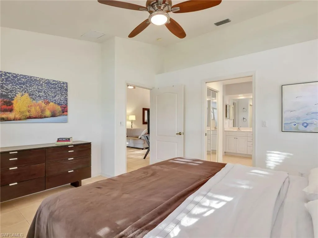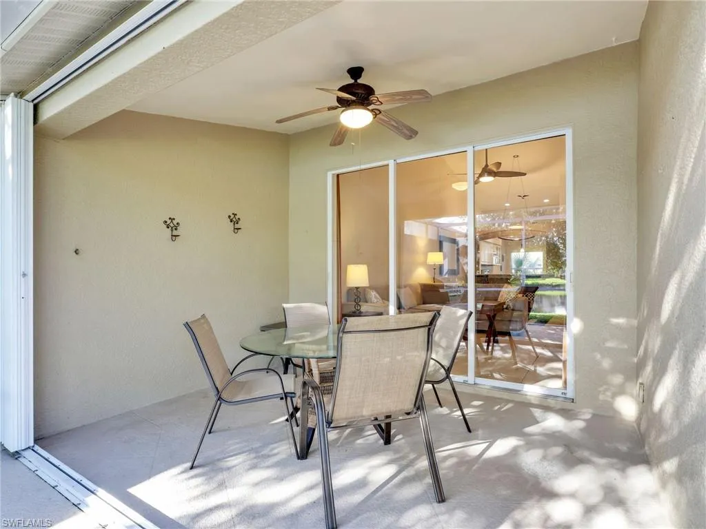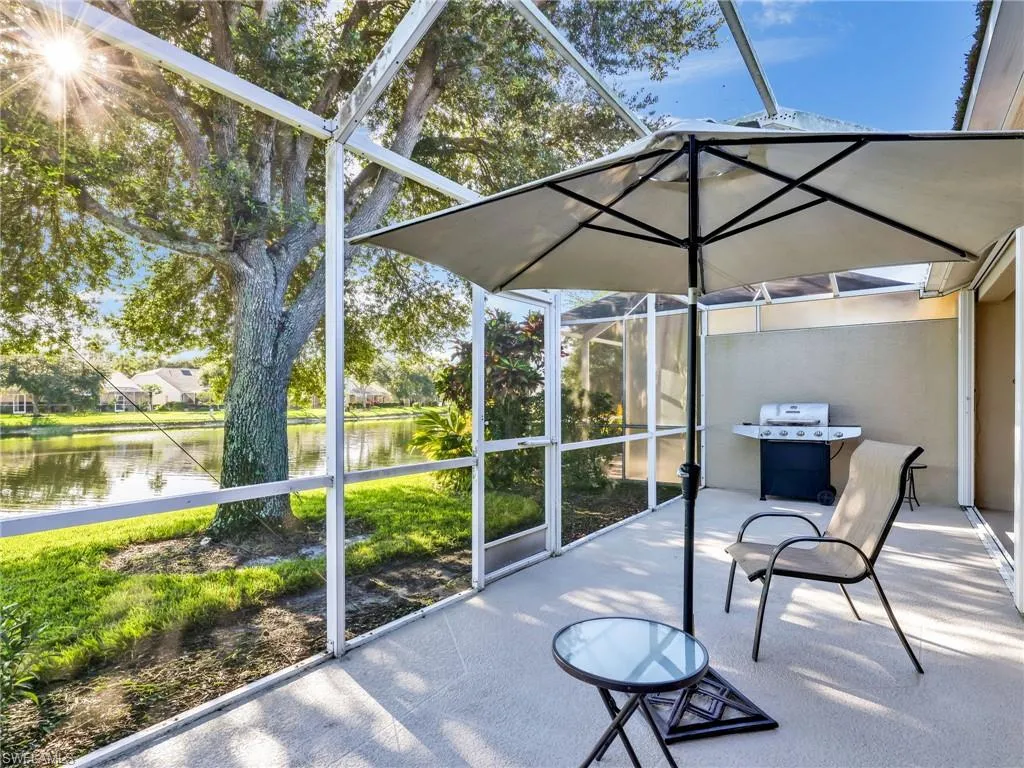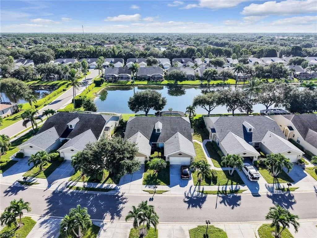 This beautifully maintained 3-bedroom, 2-bath villa in Ibis Cove is being offered turnkey furnished for your immediate enjoyment. Enjoy tranquil lakefront views from both the covered lanai, equipped with an accordion shutter for added security, and the expansive extended lanai, providing plenty of space for outdoor living and entertaining. Inside, volume ceilings create an open, airy feel, while the sunny kitchen offers a dining area, breakfast bar, granite countertops, and plenty of space for entertaining. The formal dining room flows seamlessly into the family room, providing an inviting space for entertaining and everyday living. Tile runs throughout the main living areas, with gorgeous new plank tile flooring in the guest bedrooms. The primary suite includes his-and-her closets and an en-suite bathroom for comfort and convenience. Additional highlights include a two-car garage and low HOA fees. Residents of Ibis Cove enjoy a newly renovated community center offering resort-style amenities, including a pool and spa, fitness center, tennis and pickleball courts, billiards, a card room, playground, and more. This vibrant and welcoming neighborhood provides plenty of opportunities to stay active, connect with neighbors, and enjoy a truly social lifestyle. Conveniently located in North Naples near I-75, top-rated schools, shopping, dining, entertainment, and just minutes from the beach, this pet-friendly community is perfect for enjoying everything Southwest Florida has to offer.