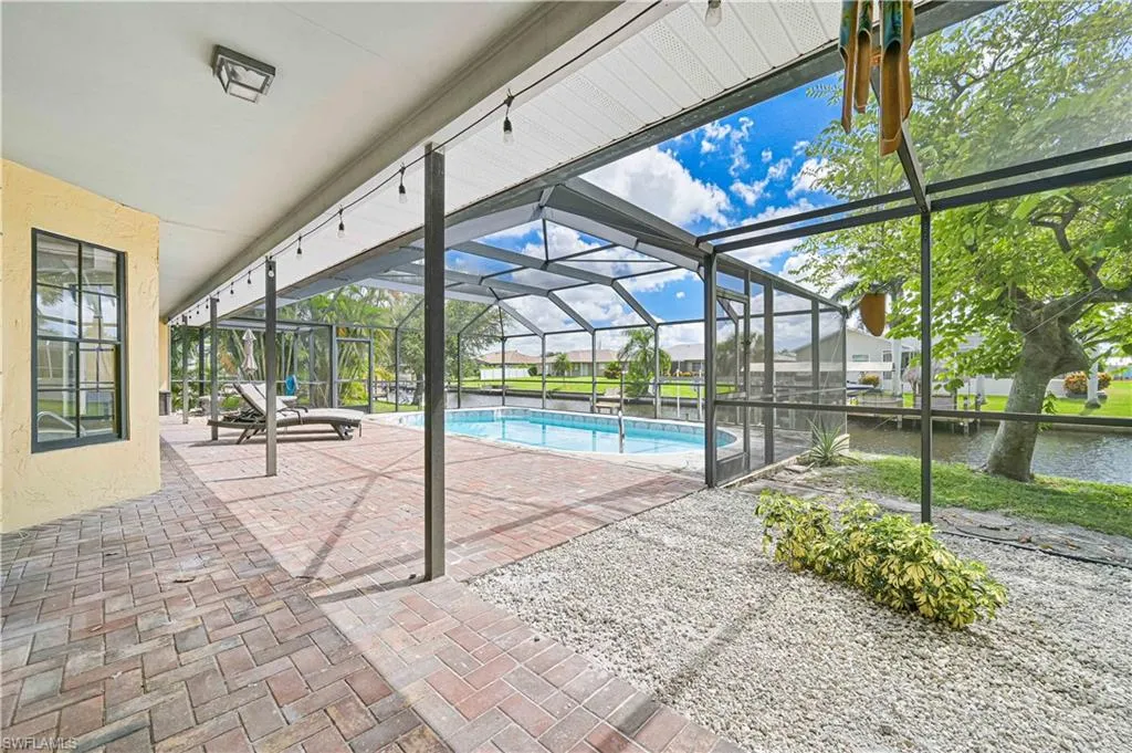 Welcome to this Gulf access pool home with dock, offering the perfect blend of comfort, functionality, and waterfront living. Featuring a newer roof and a desirable split-bedroom floor plan, this residence boasts a kitchen with stainless steel appliances, granite countertops, and wood cabinetry. Brand-new carpet has just been installed in the bedrooms, while the open and inviting layout is enhanced by large sliders and French doors from the breakfast nook, living room, master suite, and guest bedroom—filling the home with natural light and providing easy access to the screened lanai and sparkling pool. With southern exposure, you’ll enjoy sun year-round as you relax outdoors or entertain with ease. Take advantage of direct canal access right from your backyard dock—whether it’s fishing, watching for manatees and dolphins, or heading out on your boat for a day on the water. This is true Southwest Cape Coral living at its finest!