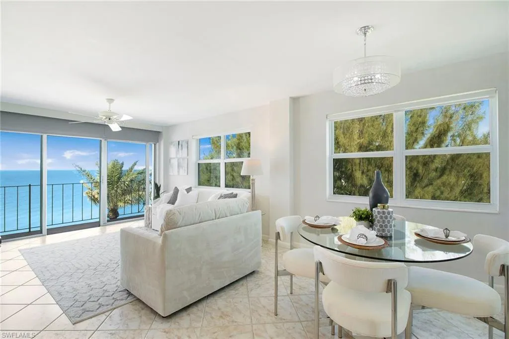 Experience the ultimate beachfront lifestyle in Naples! Welcome to Carriage Club, where luxury meets the serene beauty of the Gulf of Mexico. This stunning two-bedroom, two-bath end-unit is a rare gem, offering unparalleled views and exquisite living spaces. Nestled directly on the sandy white beaches, next to Moorings Beach Private Park, this condominium is your perfect weekend or seasonal retreat. Breathtaking views abound – enjoy sunsets and panoramic water views from the west, twinkling city lights to the north, and glimpses of the bay to the east. The expansive windows flood the unit with natural light, creating a bright and inviting atmosphere. Move-in ready, this condominium is ready for you to enjoy, featuring impact windows, remodeled baths, and new carpet. The living area boasts a slider with an electric storm shutter and a remote-controlled electric shade for your convenience. With impeccable amenities, Carriage Club offers a heated pool, assigned carport parking, extra storage, a community room overlooking the beach, and a newly renovated laundry room. The property is meticulously maintained with tropical landscaping and renovated amenities that enhance its allure. Located south of Doctor’s Pass, you are in a prime location just minutes away from The Village Shops on Venetian Bay, Old Naples, and the world-renowned shopping and dining on Fifth Avenue. Carriage Club is secure and well-managed, ensuring peace of mind for all its residents with an experienced on-site property manager and a secure lobby. Don’t miss the opportunity to own a piece of paradise in Naples.
