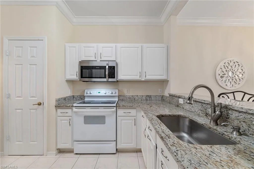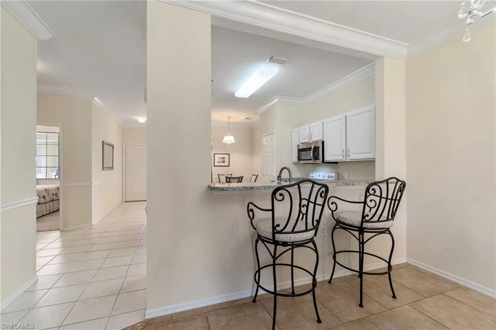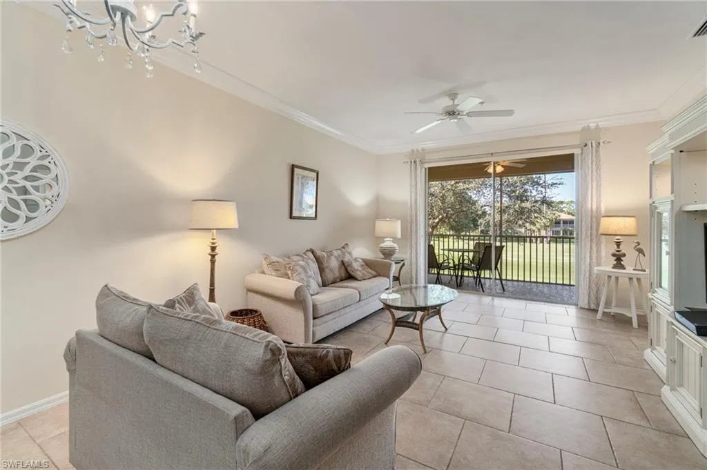 CROWN MOLDING THROUGHOUT – GRANITE KITCHEN – EXCEPTIONAL GOLF & WATER VIEWS! This 2BR/2BA condo in Forest Glen offers style, comfort, and a prime location within one of Naples’ most desirable bundled golf communities. The kitchen has been upgraded with rich wood cabinetry, granite countertops, and plenty of space for cooking and entertaining. The spacious master suite includes extended shelving in the closets for added storage, while the garage features a small workshop area for hobbies or projects. Additional highlights include an extended front patio area, perfect for relaxing outdoors, and crown molding that adds a touch of elegance throughout. From the screened lanai, enjoy spectacular views overlooking the 6th green and a peaceful pond—your own private retreat. Forest Glen is a member-owned, debt-free community with an award-winning Arthur Hills–designed 18-hole championship golf course, consistently voted among the best in the country. Amenities include a newly renovated clubhouse with member pub, poolside bar & grill, tennis with a full program and pro, pickleball, nature trails, 24/7 fitness center, aqua range, and putting green. With an active calendar of events, a welcoming atmosphere, and resort-style amenities, Forest Glen offers the ultimate Naples lifestyle! THIS PROPERTY QUALIFIES FOR A 1% LENDER INCENTIVE IF USING PREFERRED LENDER, INQUIRE FOR MORE DETAILS**