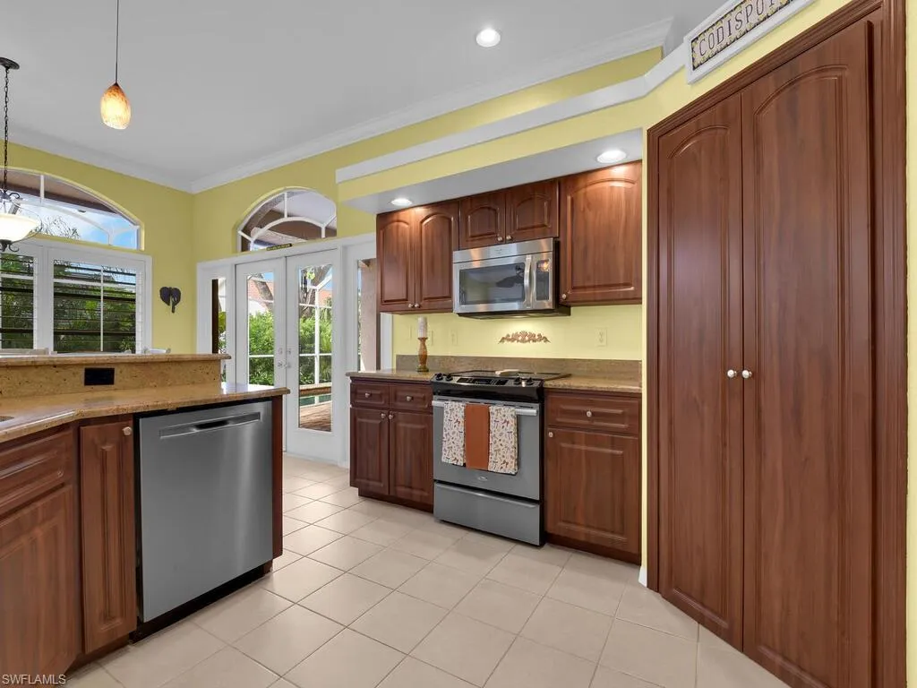 Fantastic pool home in Country Club setting! NOT IN A FLOOD ZONE. Updates to this meticulously cared for home include new pool light system Sept 2025, new a/c 2 stage compressor & handler (plus all vents replaced) Oct 2023, new salt cell May 2023, new hot water heater April 2021, new garage door opener in Jan 2021, master bath was updated in 2020, and new roof in 2014. This pool home features a classic formal living room & formal dining room, split bedroom floor plan, French doors throughout, volume ceilings, plantation shutters & arched windows, updated master bath, large closets including walk-in closets in master suite & 1 of the guest rooms, classic family layout with open concept kitchen w/ walk-in pantry & breakfast bar and breakfast nook, side facing 2-car garage, and a massive screened pool lanai w/ heated saltwater pool. You will love spending time on the rear lanai which offers a very private setting w/ mature landscaping. This area of the home gives you a fantastic place to entertain or just relax in the sun w/ an extended pool deck, pavers throughout, long covered sitting/dining area, pool w/ sun shelf & built-in cocktail table, and plenty of room for grill area. In addition to all that Gateway has to offer-bike/jog paths, basketball, pool, volleyball, playground, basketball you can choose to be a member at The Club @ Gateway giving you access to golf, state of the art fitness center, dining room w/ gourmet chef, tennis/pickleball, bocce ball resort style pool, & lots more for the entire family!
