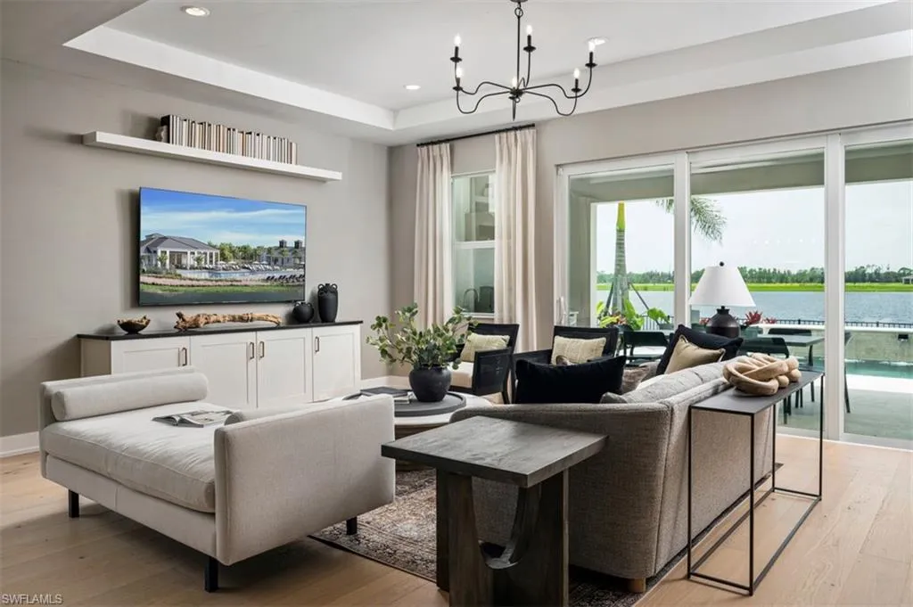 Pre-Construction. Waterfront Luxury Living | Brand-New Construction in Punta Gorda, FL Welcome to your dream home in paradise! This stunning new construction residence offers refined coastal luxury and serene waterfront views in one of Punta Gorda’s most sought-after new communities. Perfectly positioned with desirable northwest exposure, the beautifully landscaped backyard opens to breathtaking water vistas—an idyllic setting for unforgettable sunsets and tranquil evenings. Designed with both elegance and functionality in mind, this home features a light-filled open-concept floor plan that seamlessly connects indoor and outdoor living. The showstopping gourmet kitchen is a true centerpiece, featuring an oversized island with exquisite navy and white cabinetry, sleek quartz countertops, and top-of-the-line stainless steel appliances, including an electric cooktop, wall oven, microwave with glass touch controls, and a stylish vented hood. The great room, drenched in natural light, flows effortlessly into the dining and entertaining spaces—all capturing stunning water views that set the tone for luxury living. Retreat to the serene primary suite, where expansive windows frame peaceful water views, and unwind in your spa-like en-suite bath complete with quartz counters, wood cabinetry, and modern finishes. Throughout the home, luxury vinyl plank flooring adds warmth and durability—no carpet, just clean lines and contemporary comfort. Built to the highest standards, this home includes hurricane impact glass windows and doors, the latest building codes, and a comprehensive builder warranty for your peace of mind. There’s plenty of room to design your custom pool oasis, creating the ultimate Florida lifestyle in your own backyard. And just beyond your doorstep, an exciting new waterfront amenity center is underway—featuring a clubhouse, resort-style pool and spa, fitness center, yoga lawn, BBQ areas, and both pickleball and tennis courts. Don’t miss this rare opportunity to own a slice of waterfront luxury in Punta Gorda—where every day feels like a vacation. Please see MLS supplements for floor plan layout. Lot 318.
