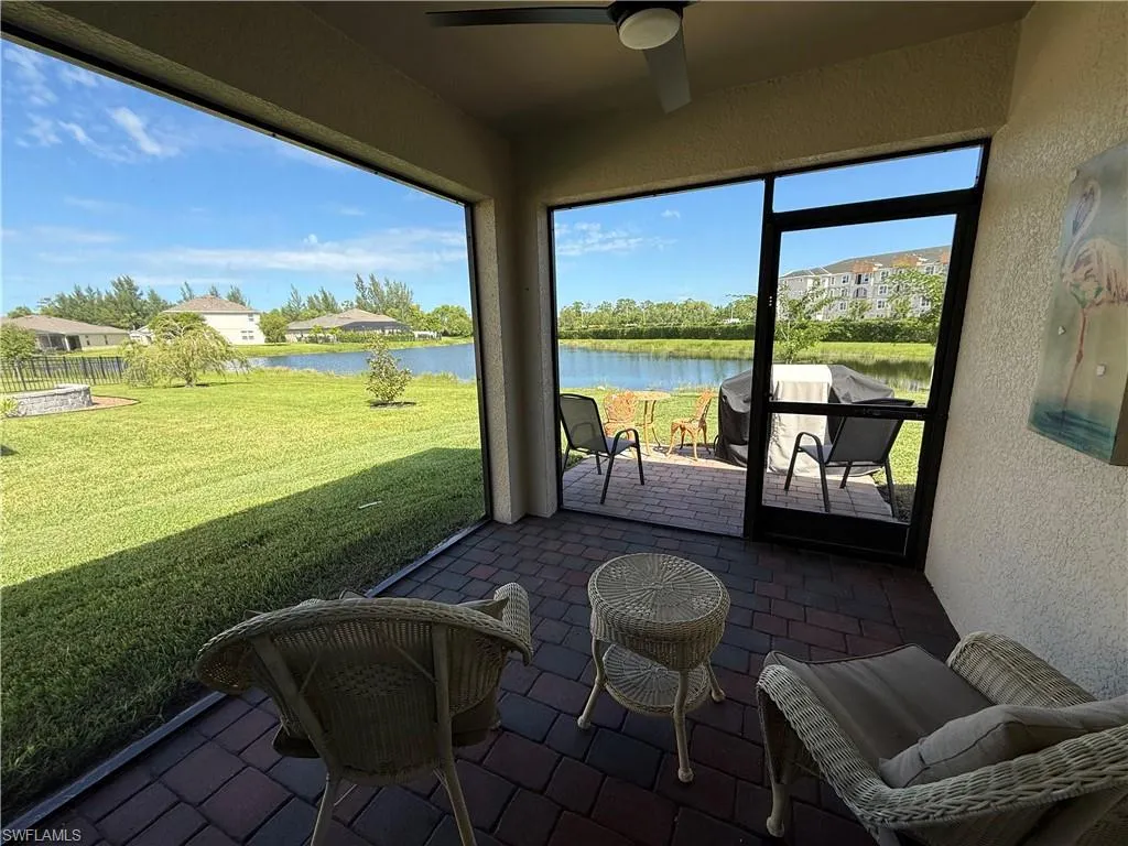 New Rental The Village at ENTRADA! This home is available Long Term unfurnished for $2000 per month or rent furnished turnkey for winter 2026 short term by the month. Available starting in December of 2025. Furnished is $3000 plus tax and fees for November and December 2025 and April 2026. January through March 2026 are $3500 per month plus 11.5% tax and application fees. This home is like brand new! Built in 2019 and meticulously cared for by the owners. They are hoping to find tenants who would treat this home as their own. 3 bedrooms and 2 baths with a nice screened lanai and pretty LAKEVIEW! Gated Community. Amenities include a fitness center, resort style pool, kiddie pool with fountains, tennis, pickleball and bocce. For long term annual rental the monthly rent is $2300 per month and the tenant pays the water, sewer, electric, cable and wifi. There is also a $100 monthly fee for the lawn service that will be provded by the current lawn service. Short term rentals include all utilities.