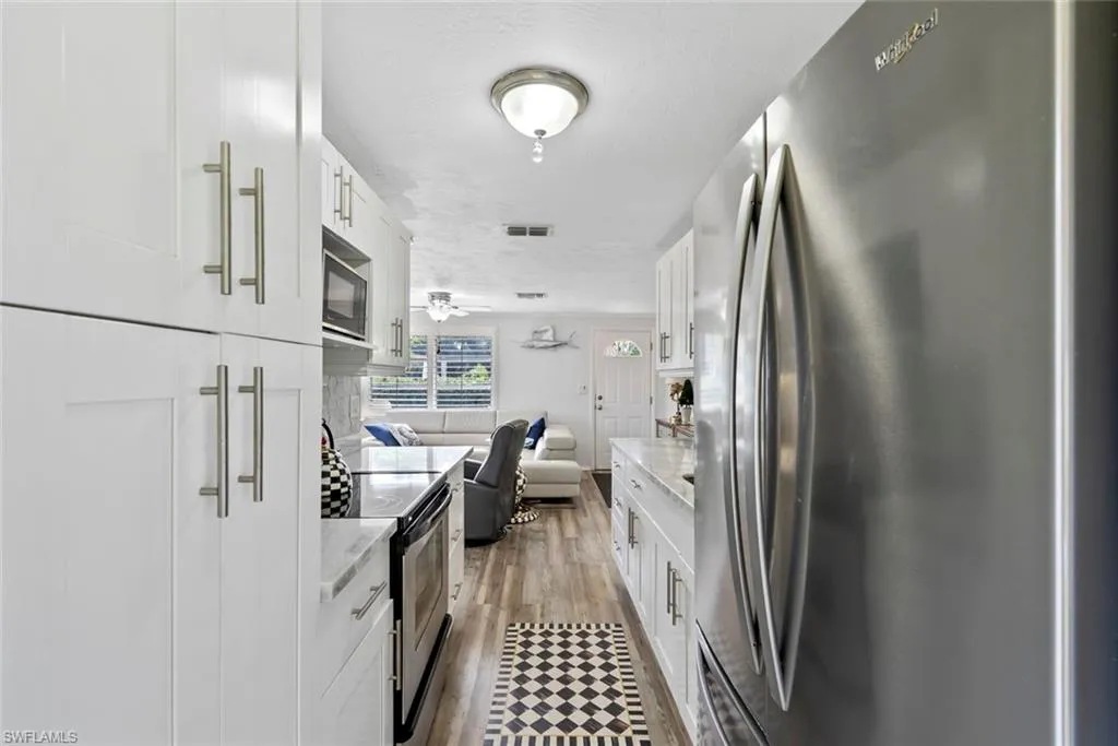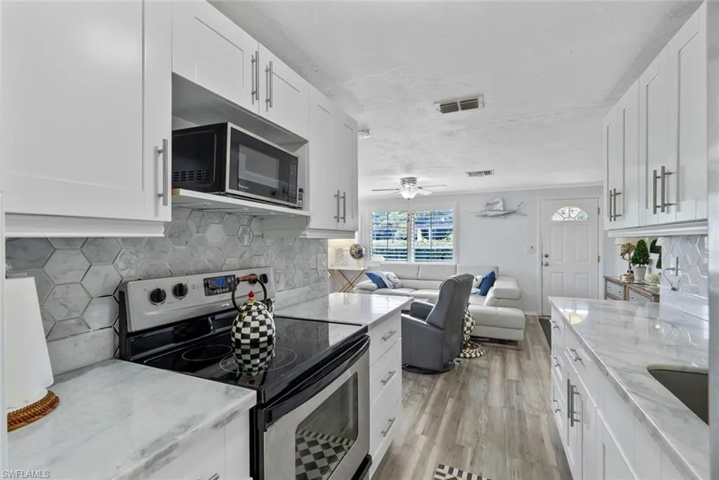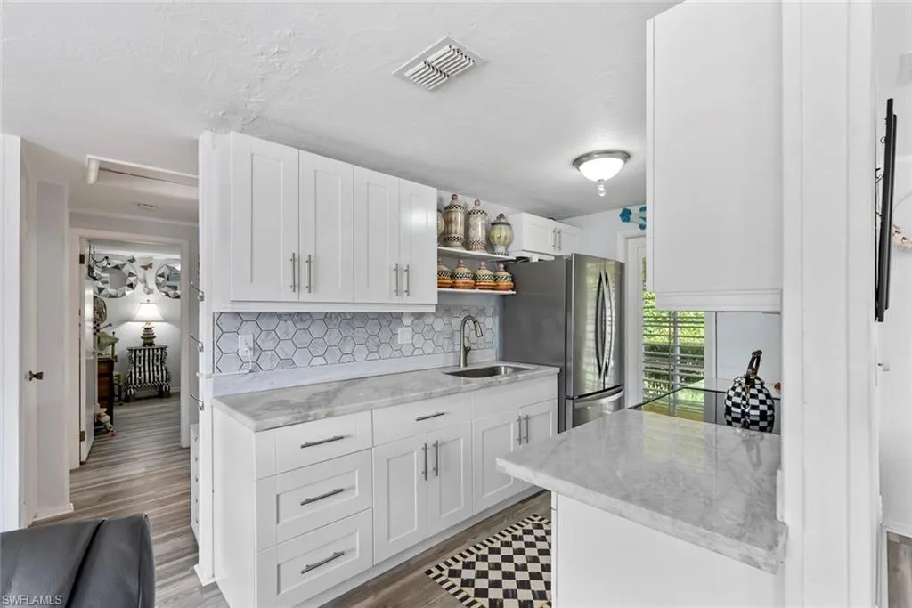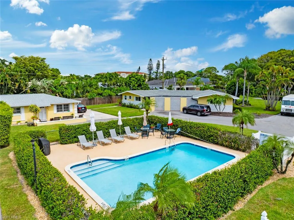 Highly desirable PARK SHORE area of Naples OUTSIDE FLOOD ZONE. This beautifully remodeled 2-bedroom, 1-bath condo is located just minutes from the pristine shores of SEAGATE BEACH. Inside, you’ll find a bright and airy layout with modern finishes, new laminate flooring throughout, and a fully renovated kitchen featuring granite countertops, shaker-style soft-close cabinetry, a stylish backsplash, stainless-steel appliances, and a separate room for washer, dryer, and water heater. The spacious bedrooms are designed for comfort and privacy with plantation shutters, while the updated bathroom showcases elegant upgrades. A BRAND NEW AC installed in 2025 and a water heater from 2017 provide efficiency and peace of mind. The screened-in back porch adds versatility with space for laundry and storage, while the private fenced backyard with a sidewalk area for grilling offers a rare sense of privacy in this prime Naples location. A private driveway adds convenience, and the community pool is just steps away for easy relaxation. Best of all, the property is in a X500 – NOT IN AE FLOOD ZONE. Perfect as a year-round residence or a vacation getaway, this move-in ready condo combines coastal charm with modern living in one of Naples’ most coveted neighborhoods. Don’t delay and get your slice of paradise today!