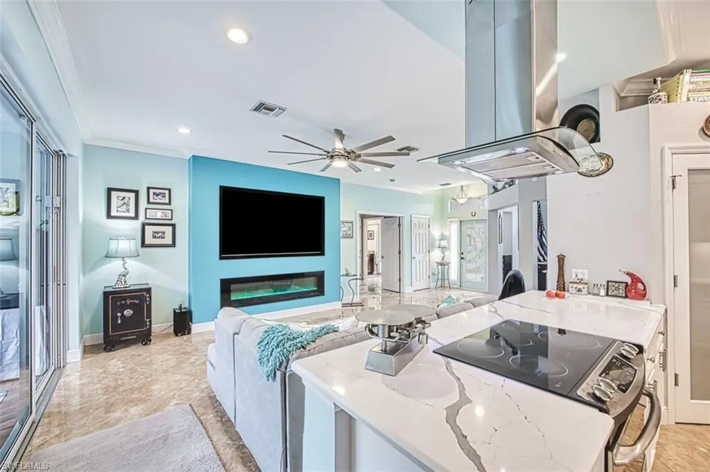 SELLERS ARE READY TO MOVE. BRING ALL OFFERS. Welcome to your dream home in the small community of Southwind Preserve! This stunning single family home boasts 3 bedrooms, , + office 2 bathrooms, and a spacious 3 CAR GARAGE. The in-ground salt pool with SUN SHELF is perfect for relaxing on hot summer days, while the office provides a quiet space to work from home. The modern kitchen features stainless steel appliances, quartz countertops, and a built-in coffee/wine station, making it a chef’s paradise. The tile flooring adds a touch of elegance and is easy to maintain. Recently added an electric fireplace with a built in TV area above to add to the warmth of the home. With a new roof and close proximity to Sanibel, Captiva, and Fort Myers beaches, as well as the international airport and historic downtown area, this home offers the perfect blend of luxury and convenience. Don’t miss out on the opportunity to make this your forever home in paradise! Accordian Storm Shutters for added peace of mind.