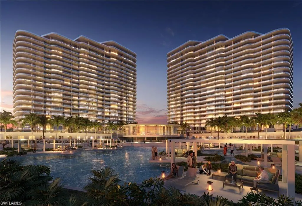 Located along the serene shores of Estero Bay in Southwest Florida and situated within 500 acres of lush lands and unobstructed views of Estero Bay and the Gulf of Mexico, The Ritz-Carlton Residences, Estero Bay stands as a testament to luxury living at its finest. Nestled atop the 22-story property’s North Tower, the 12,790 square foot prestigious residence, the penthouse exudes opulence and sophistication, offering an unparalleled living experience. Spanning an expansive 6,780 square feet of interior space, this residence boasts 4 bedrooms, 5 1/2 baths plus den and gym. From the moment you step inside, you are greeted by soaring ceilings, exquisite finishes, and stunning views. The interior layout is meticulously designed to provide the utmost comfort. Each bedroom is a sanctuary of its own, offering privacy and tranquility, while the primary suite is a true retreat, featuring a lavish ensuite. With nearly as much outdoor space as indoor, it’s sprawling 6,010 square-foot terrace is perfect for entertaining. Step out onto the expansive vistas and discover a world of leisure and relaxation. Indulge in al fresco dining with your custom-designed summer kitchen, unwind in your private spa, or lounge by your poolside cabana. For the discerning car enthusiast, the penthouse includes a three-car garage. Stretching majestically across the waterfront, this unparalleled development will consist of two 22-story striking towers developed by London Bay Development Group and slated for occupancy in 2027. With a total of 224 residences, every detail has been meticulously crafted to provide the epitome of comfort and elegance. As you step into this exclusive enclave, you are greeted by a sense of tranquility and sophistication. Residents are treated to a myriad of amenities, including a sports simulator room, theater, teen and kids club, a luxurious beauty salon and spa, 24-hour concierge, bellman, and valet services. A wellness center with state-of-the-art fitness equipment, a yoga and Pilates studio, a private training section, and locker rooms with steam and sauna. Where indulgence and relaxation converge seamlessly. Enjoy direct access to Saltleaf featuring a 72-boat slip marina, a new 18-hole championship golf course, a 9-hole short course, tennis, pickleball, and a 5-star restaurant. Enjoy the Sunset Lounge, private dining room, and daily continental breakfast at the Sports and News Cafe. Experience waterfront living at its finest, where every sunset marks the beginning of another unforgettable day in paradise where luxury meets coastal splendor.