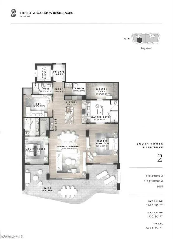 Nestled along the serene shores of Estero Bay in Southwest Florida, situated within 500 acres of lush lands and unobstructed views of Estero Bay and the Gulf of Mexico. The Ritz-Carlton Residences, Estero Bay stands as a testament to luxury living at its finest. Stretching majestically across the waterfront, this unparalleled development will consist of two 22-story striking towers developed by London Bay Development Group. With a total of 224 residences, every detail has been meticulously crafted to provide the epitome of comfort and elegance. Residences range from 2,628 to 3,885 square feet, including two-, three- and four-bedrooms plus a den. As you step into this exclusive enclave, you are greeted by a sense of tranquility and sophistication. Residents are treated to a myriad of amenities, including a sports simulator room, theater, teen and kids club, a luxurious beauty salon and spa, 24-hour concierge, bellman, and valet services. A wellness center with state-of-the-art fitness equipment, a yoga and Pilates studio, a private training section, and locker rooms with steam and sauna. Where indulgence and relaxation converge seamlessly. Enjoy direct access to Saltleaf featuring a 72-boat slip marina, a new 18-hole championship golf course, a 9-hole short course, tennis, pickleball, and a 5-star restaurant. Enjoy the Sunset Lounge, private dining room, and daily continental breakfast at the Sports and News Cafe. Experience waterfront living at its finest, where every sunset marks the beginning of another unforgettable day in paradise where luxury meets coastal splendor.