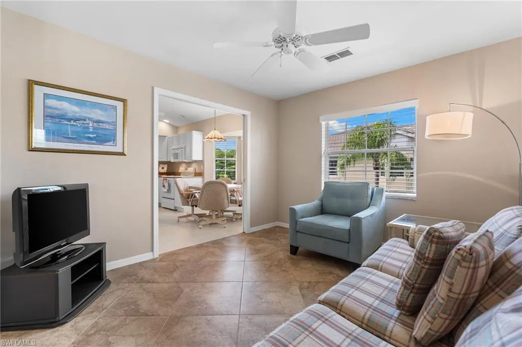 Welcome to a well maintained, furnished condo in the gated community of Mystic Greens. This 2nd floor condo with a private elevator, offers an expansive 2,337 square feet of living space. With 3 bedrooms and 3 baths, this condo is perfect to tailor to your personal needs and lifestyle. The southeast facing lanai is a standout feature for enjoying the warm morning sun and tranquil evenings, all while soaking in the picturesque golf course views. Enjoy access to the Mystic Greens clubhouse and pool, where you can unwind, socialize and enjoy a refreshing swim. As part of the Lely Resort community, the amenities are top notch. The Players Club & Spa, with all their wonderful amenities, is available with this condo but not required. For the avid golfer, enjoy 2 public golf courses and 1 private golf course. Experience the blend of luxury and leisure at Mystic Greens, and make this spacious haven your own!