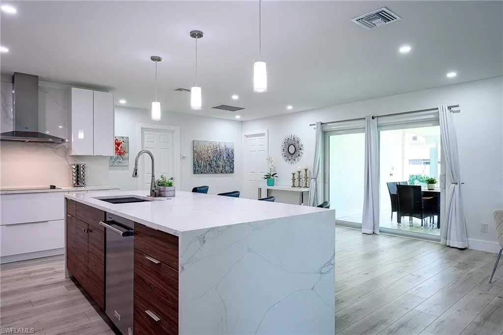 Beautifully renovated ready to move in. Offered turnkey furnished, this 3 bedroom, 2 bath home sits on a rare double lot in the 500 block of Naples Park. Recent upgrades include a new roof (2023), hurricane impact windows, and stylish interior renovations. The bright open layout features a modern chef’s kitchen with large island, stainless steel appliances, and updated baths. A spacious 2-car garage adds convenience, while the oversized lot offers plenty of room to create your dream pool and backyard oasis, with an already existing enclosed screened lanai. Ideally located west of US-41, just minutes to Vanderbilt Beach, Mercato, shopping, dining, and entertainment.